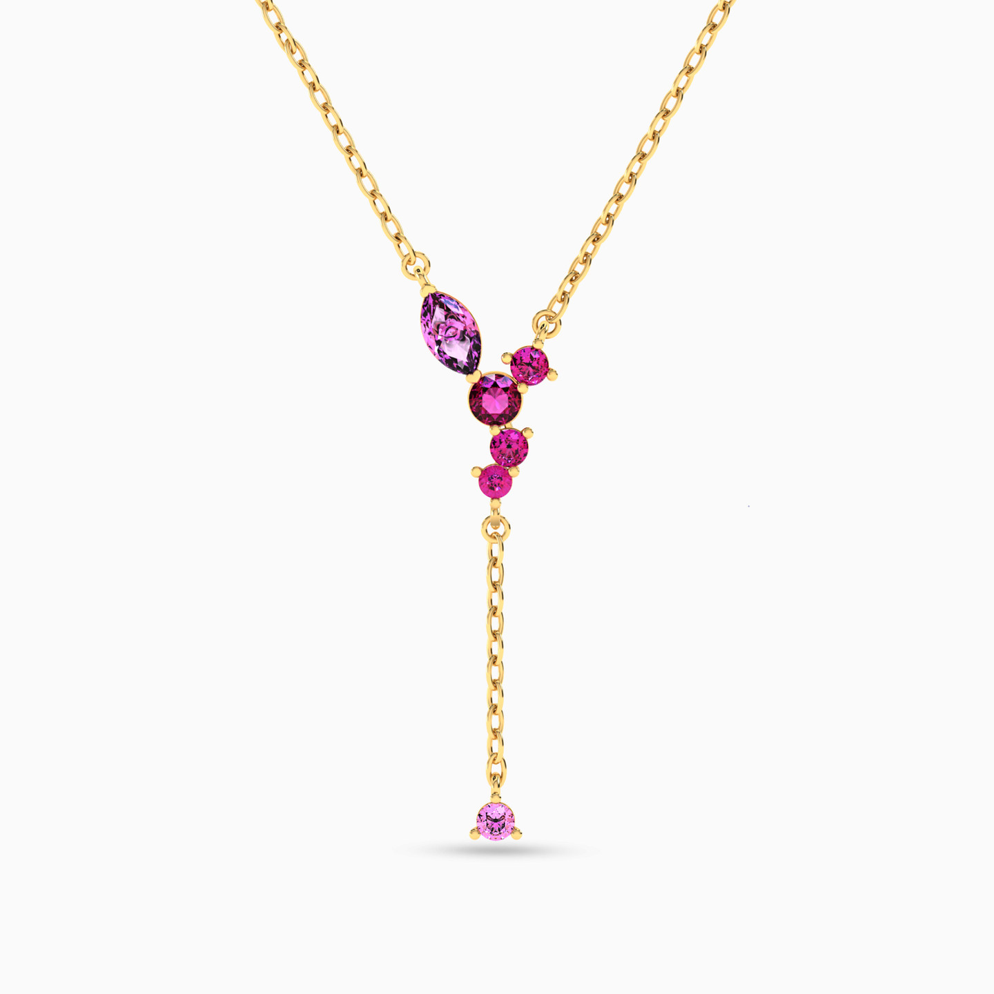 Multishaped Rose Stone Necklace in 18K Gold