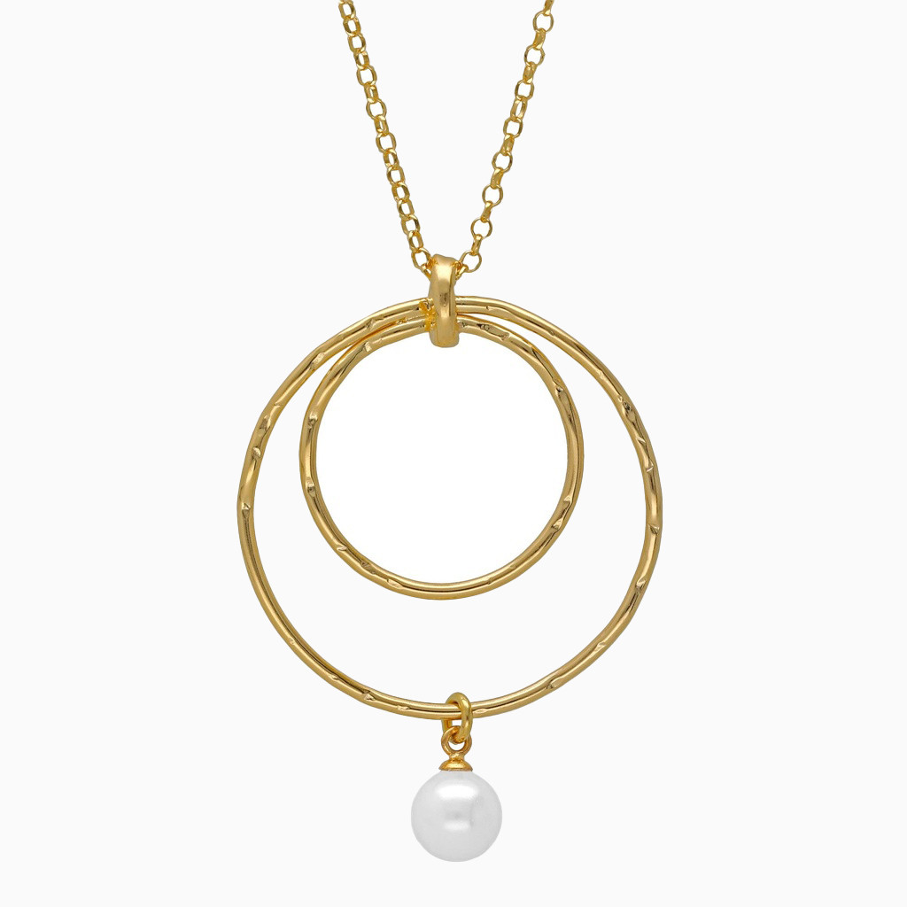 Open Rings Pearl Gold Plated Necklace