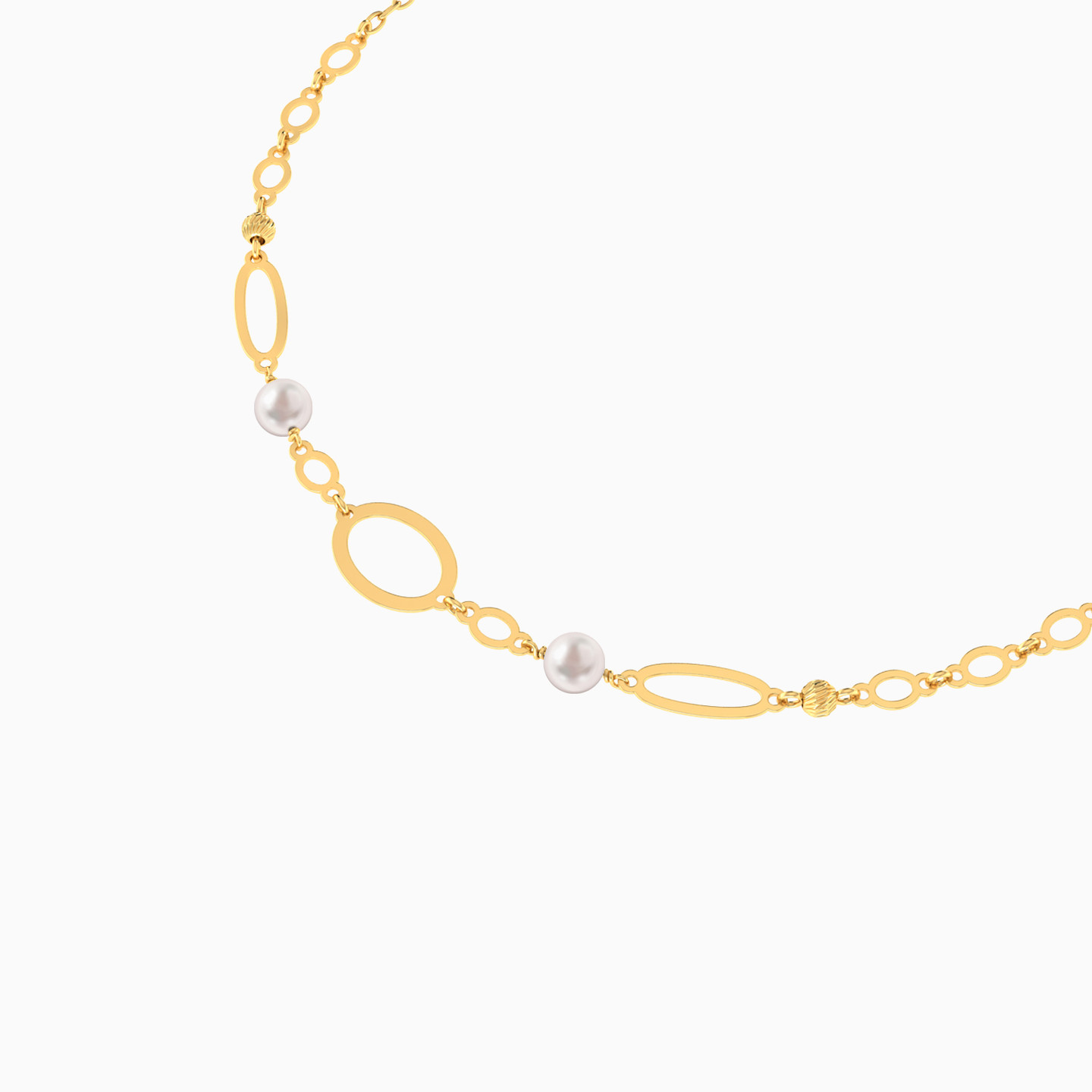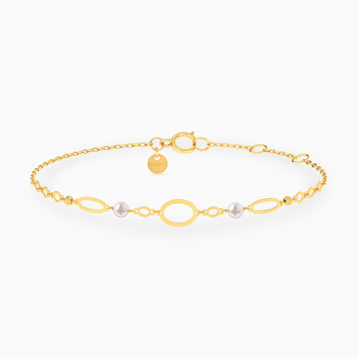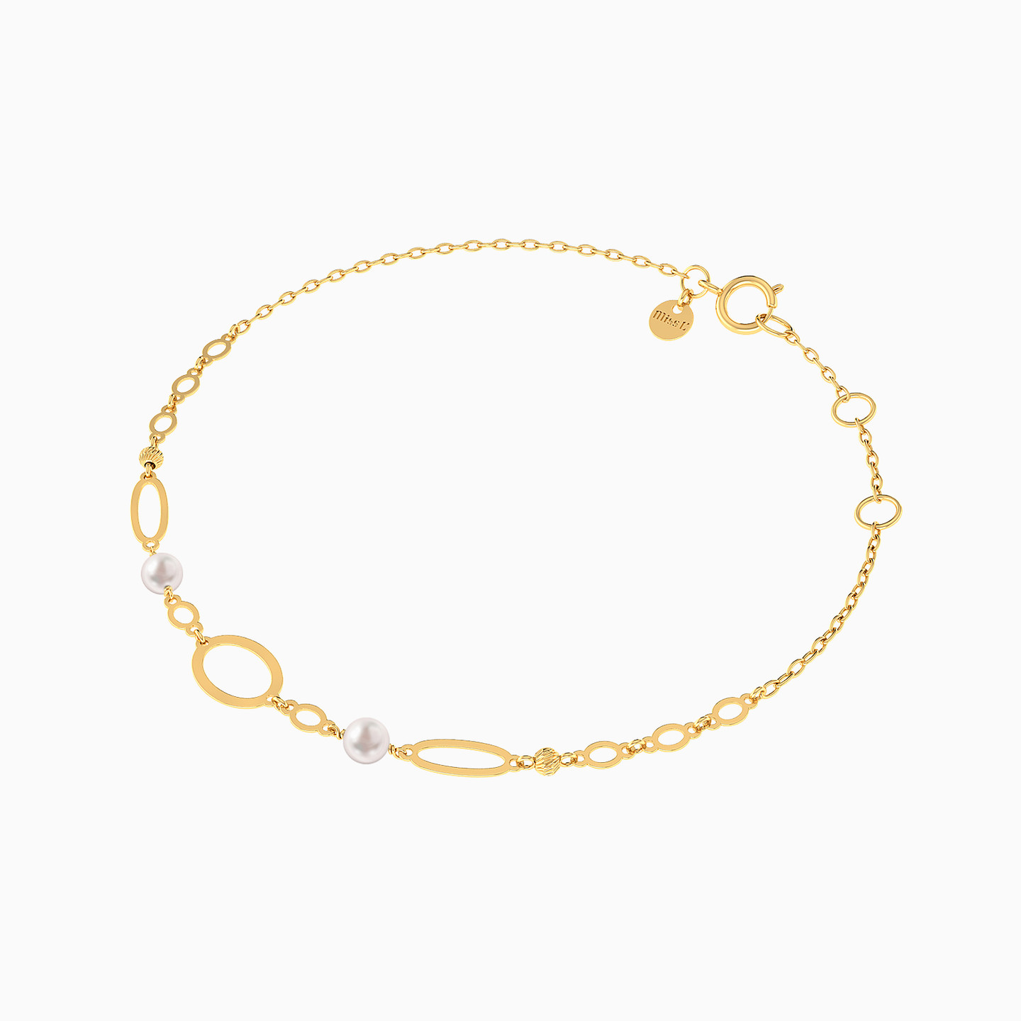 Oval & Round Loops Pearl Chain Bracelet In 18K Gold