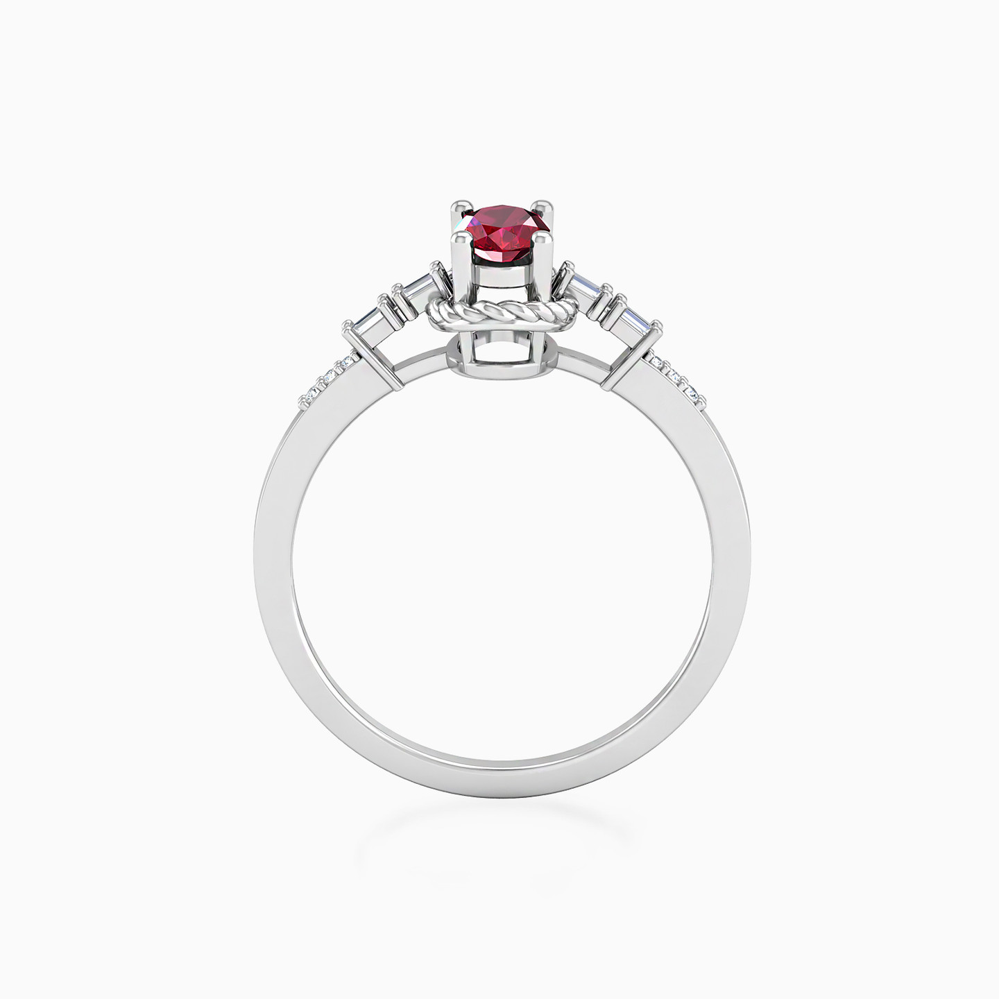 This timeless 18-karat white gold beauty from L'azurde Diamonds is a perfect piece to wrap around your finger. This statement ring features a dazzling square-shaped ruby-red stone set on four prongs lovingly embraced by sparkly waves of brilliant cut diamonds on either side. The sparkle of the diamonds compliments the red hue of the colored stone beautifully, while the split-style band adds to the charm of this exquisite ring. A perfect pick for days when you need something special.
