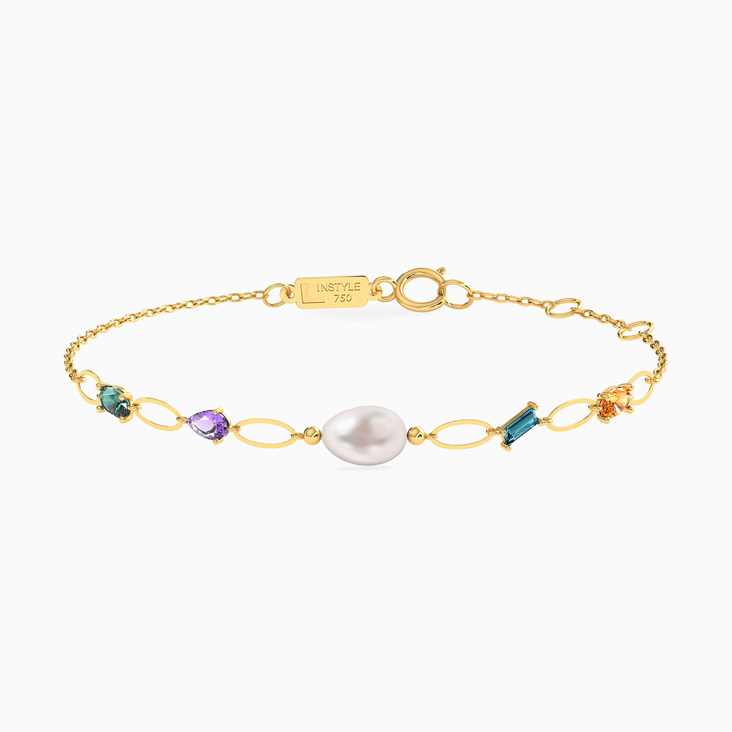 A pristine pearl, sparkling 0.39-carat colorful stones and 18-karat yellow gold come together to create this masterpiece! This lovely chain bracelet from L'azurde Instyle has everything you would want in an elegant and stylish accent. Something so beautiful deserves to be worn every day, right?
