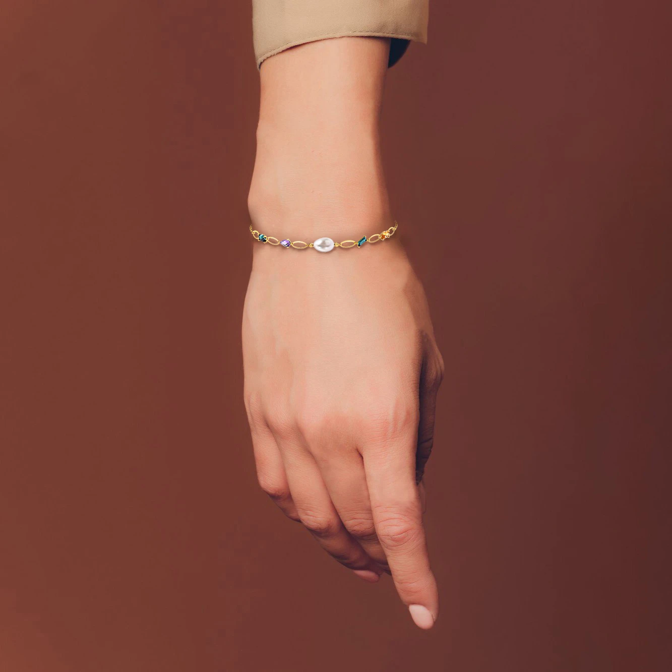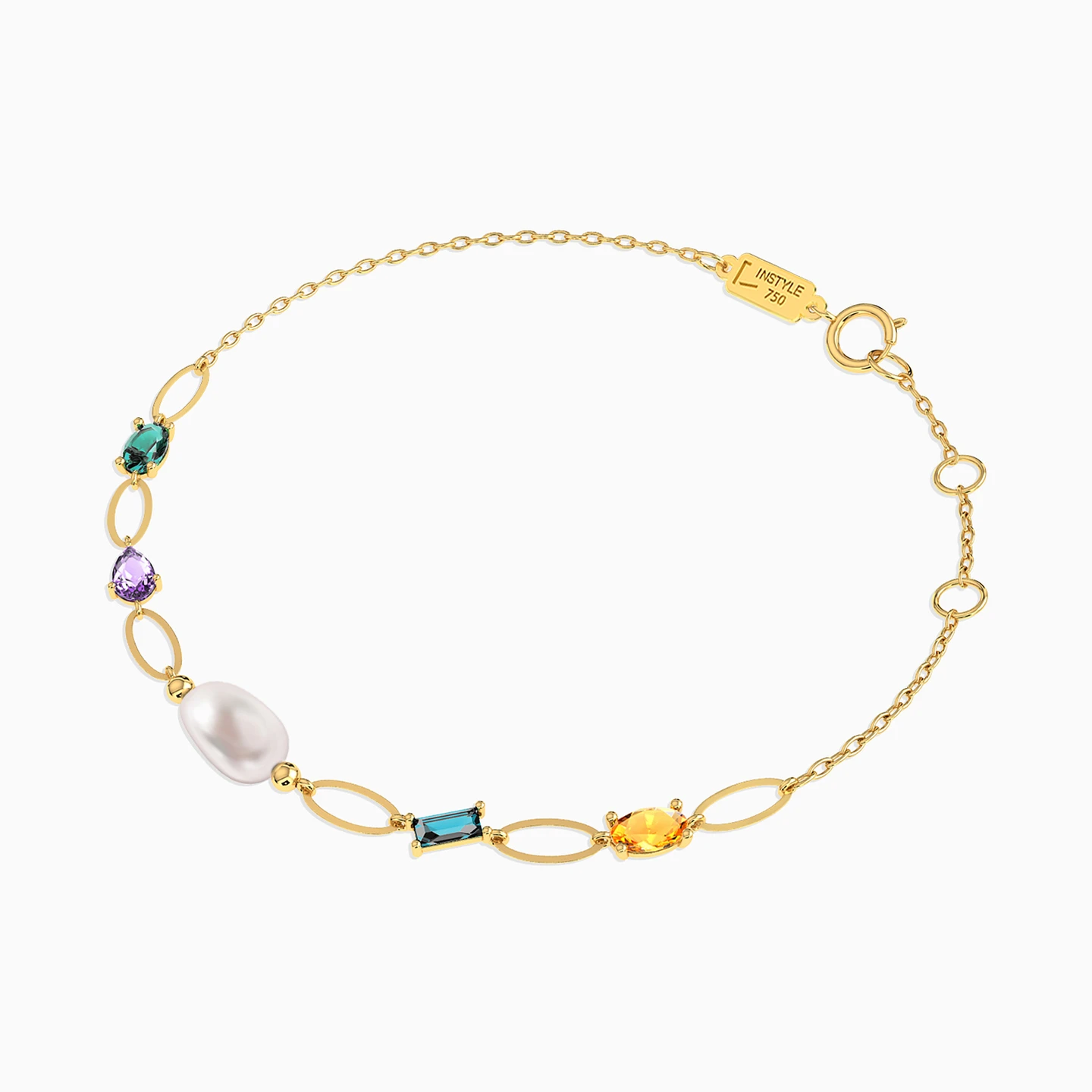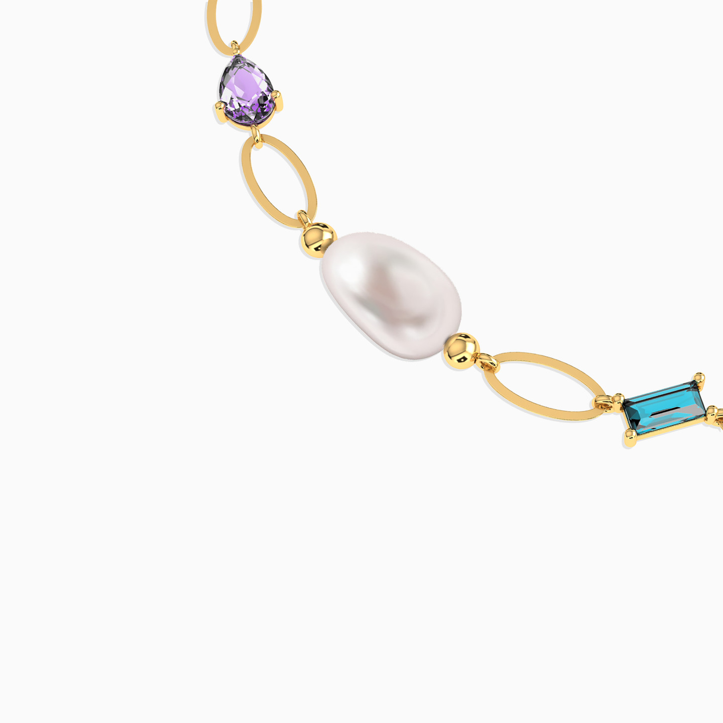 Oval Pearls & Colored Stones Chain Bracelet in 18K Gold