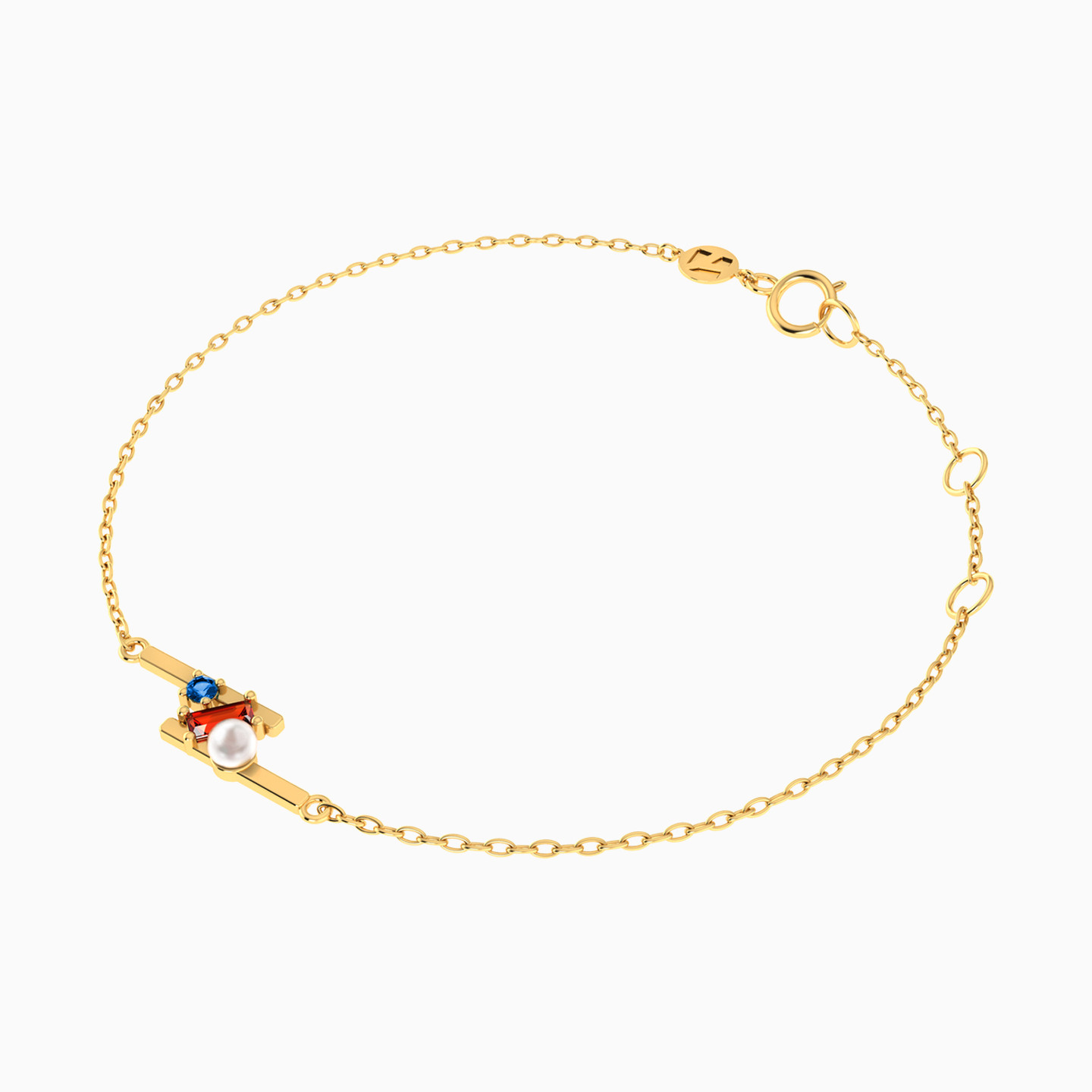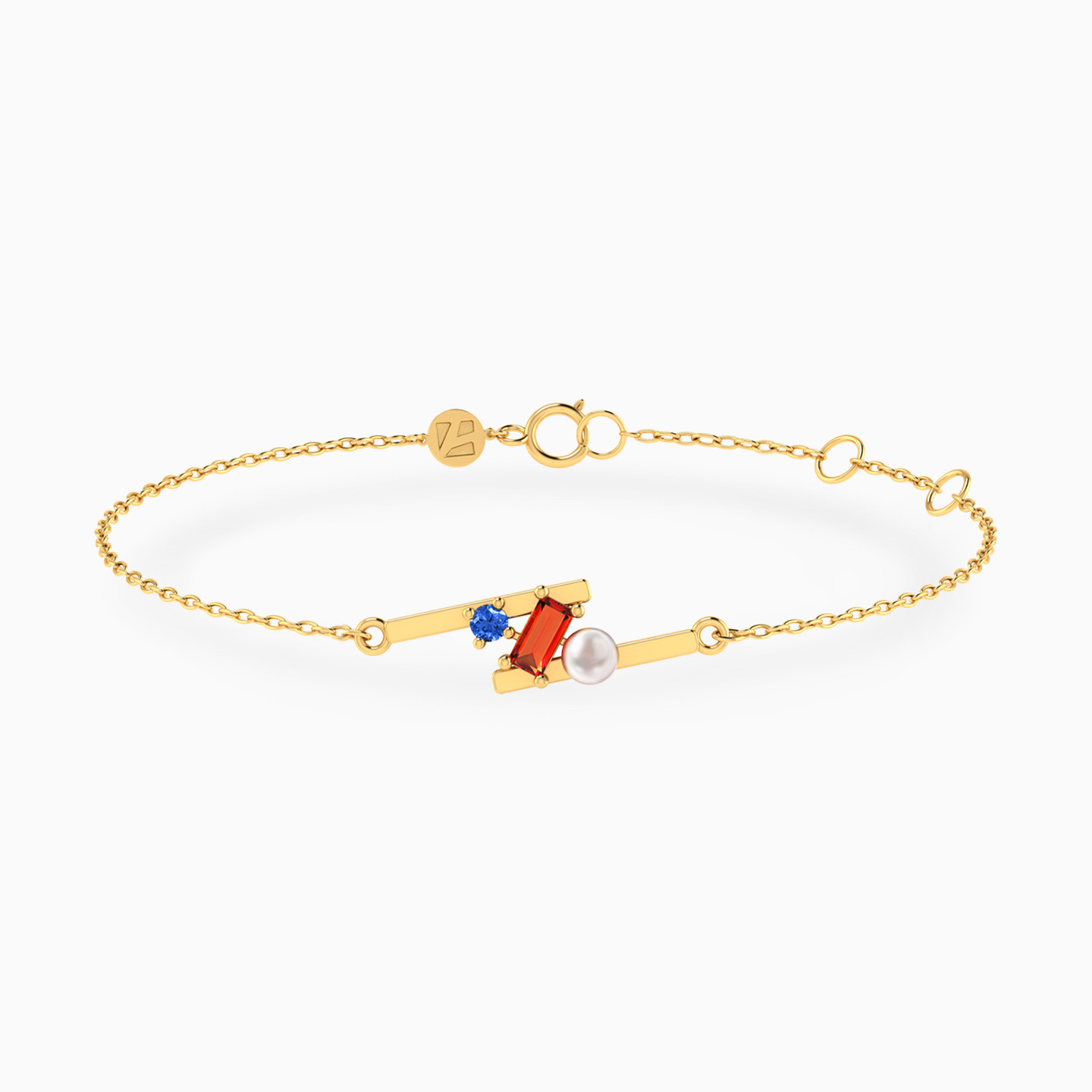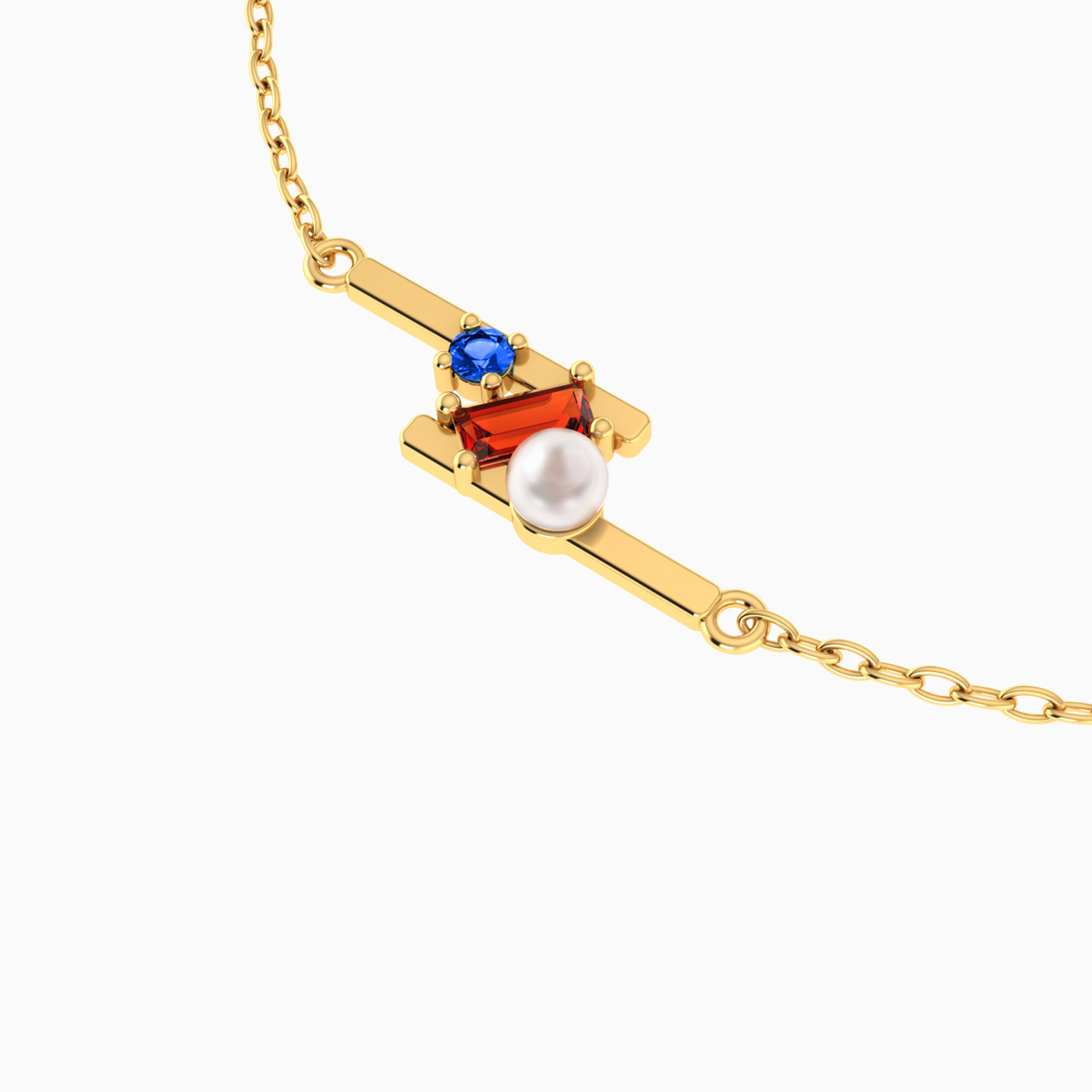 Parallel Bars Colored Stones & Pearl Chain Bracelet in 18K Gold