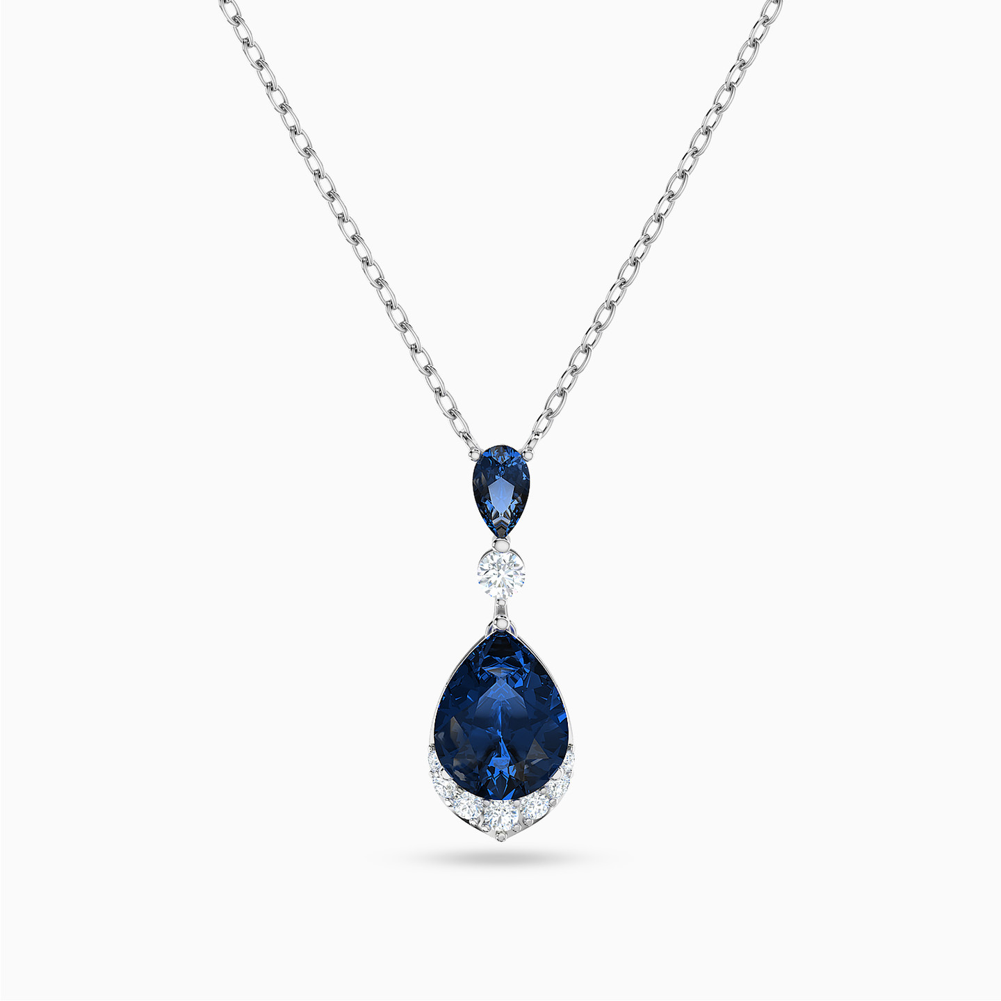Shine like royalty with this mesmerizing 18-karat white gold pendant necklace with colored stones from L’azurde Instyle. This breathtaking necklace is sure to turn heads with multi-shaped deep blue colored stones and shimmering accents. We love how the graceful design of this piece adds feminine flair and soft sophistication to any look.