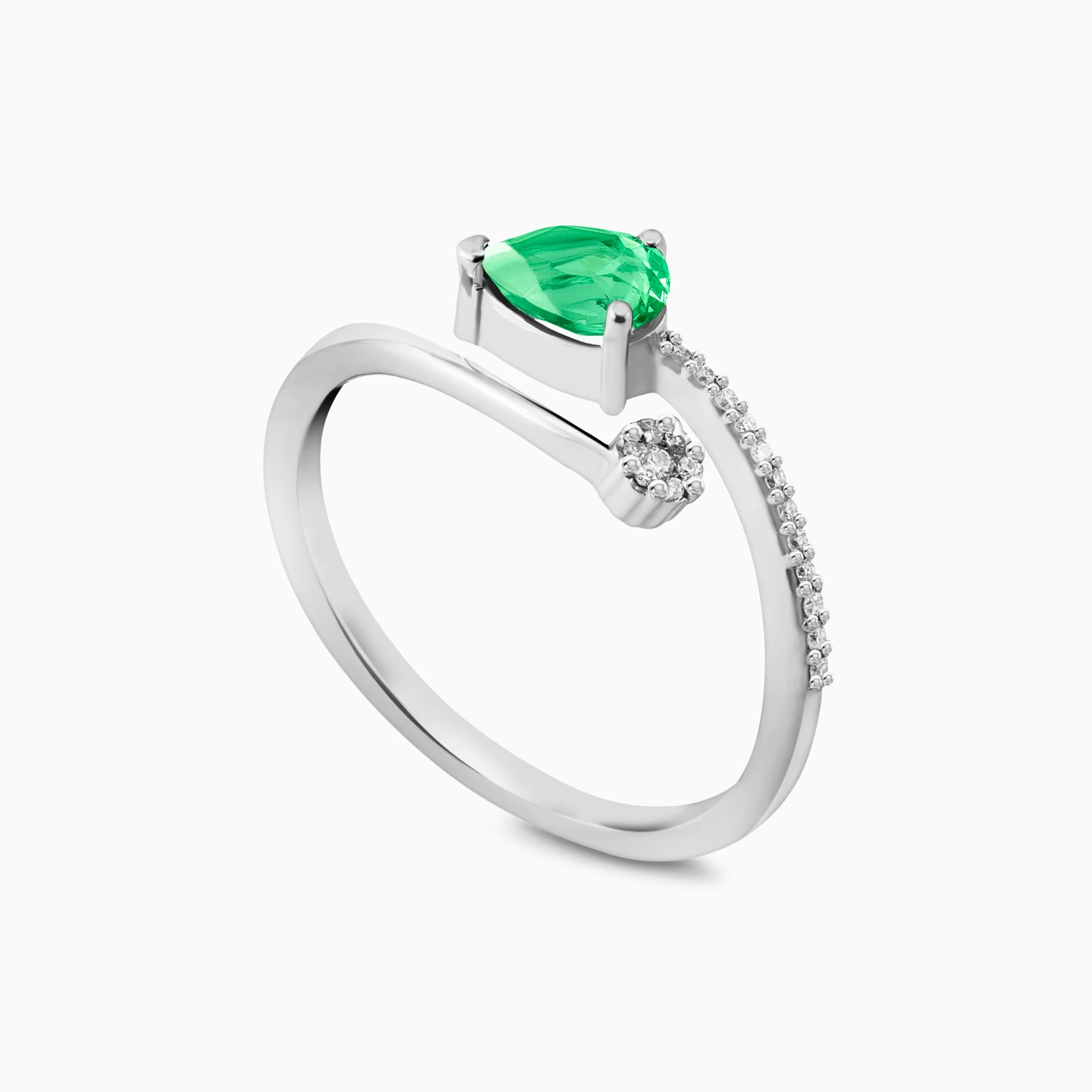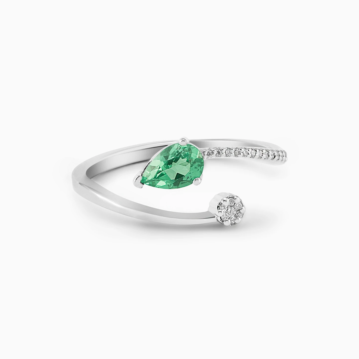 Elevate all your favorite looks with the simply sophisticated design of this 0.05-carat diamond and colored stone ring from L'azurde Diamonds. A sleek 18-karat white gold band wraps gracefully around the finger, punctuated with a prong-set diamond at one end and a gorgeous green pear-shaped stone on the other. Additional diamonds dot the shank. We love this two-headed ring paired with diamond stud earrings and a green stone pendant.