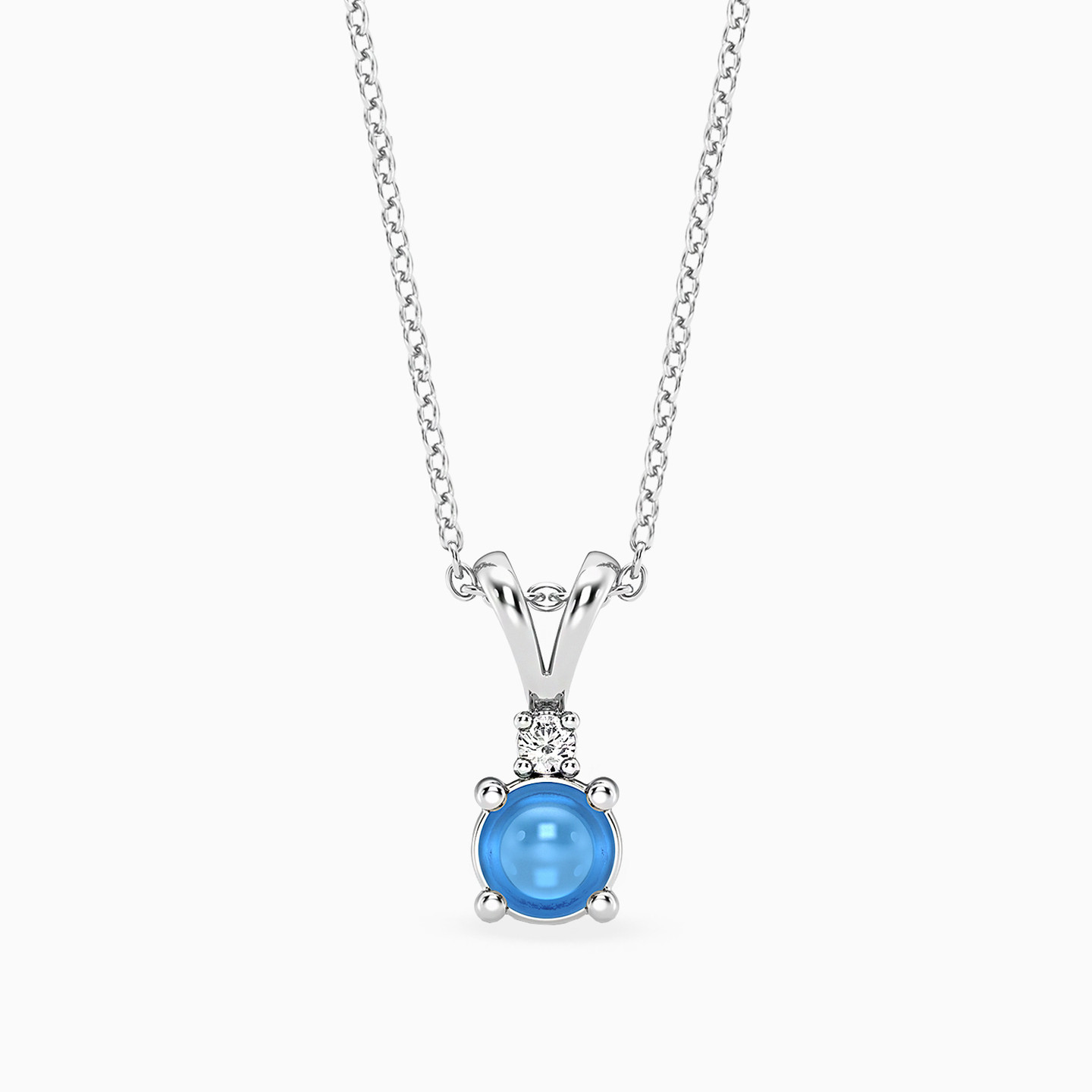 Round Blue Stone & Lab Grown Diamonds Sterling Silver Necklace