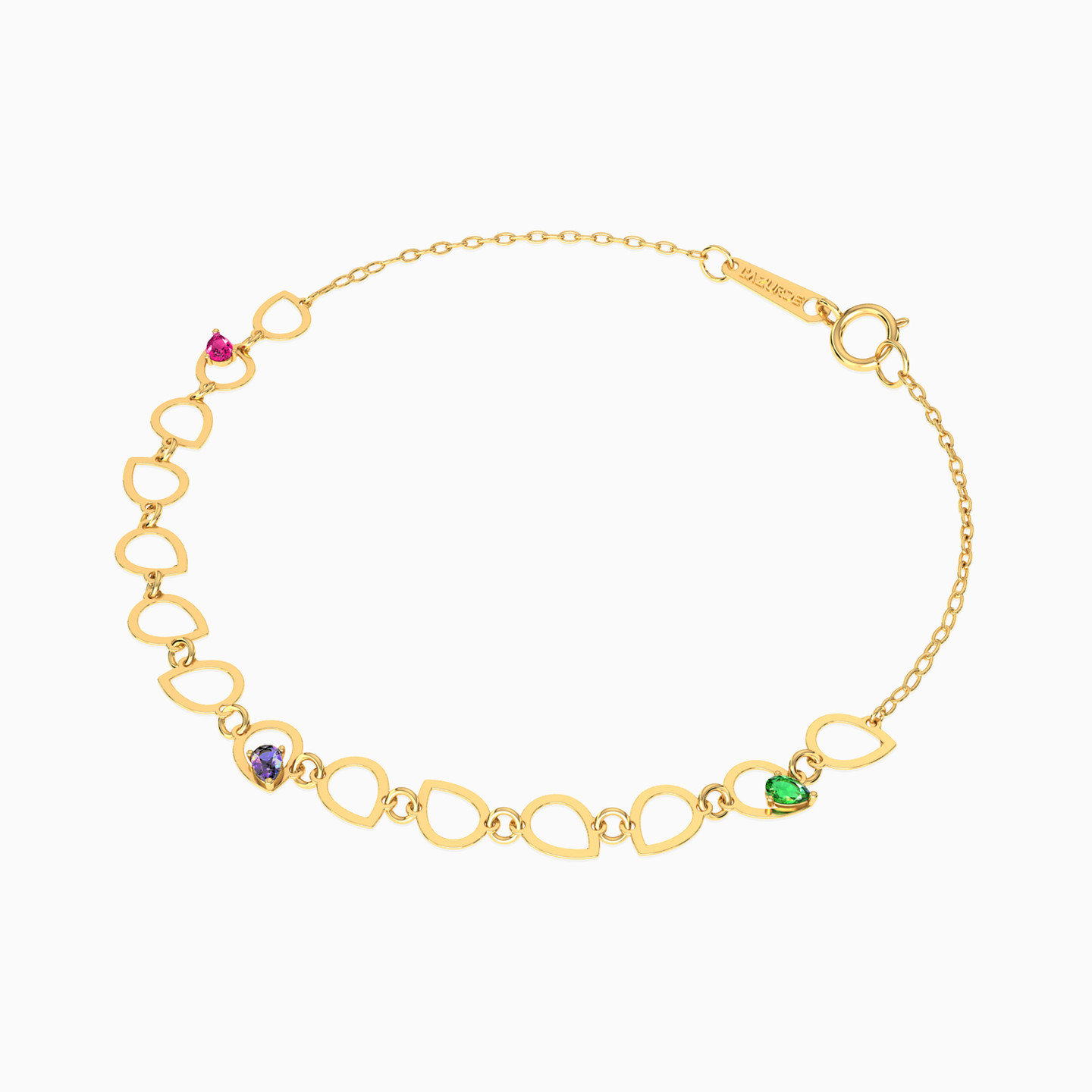 Take your look to the next stylish level wearing this 18-karat yellow gold bracelet from L’azurde Instyle. We love this eye-catching bracelet with its pear-shaped links and pretty colored stones for its ability to add femininity to work attire, formal wear and weekend looks. Pair this bracelet with colored stone earrings in a matching hue or with simple yellow gold drop earrings.