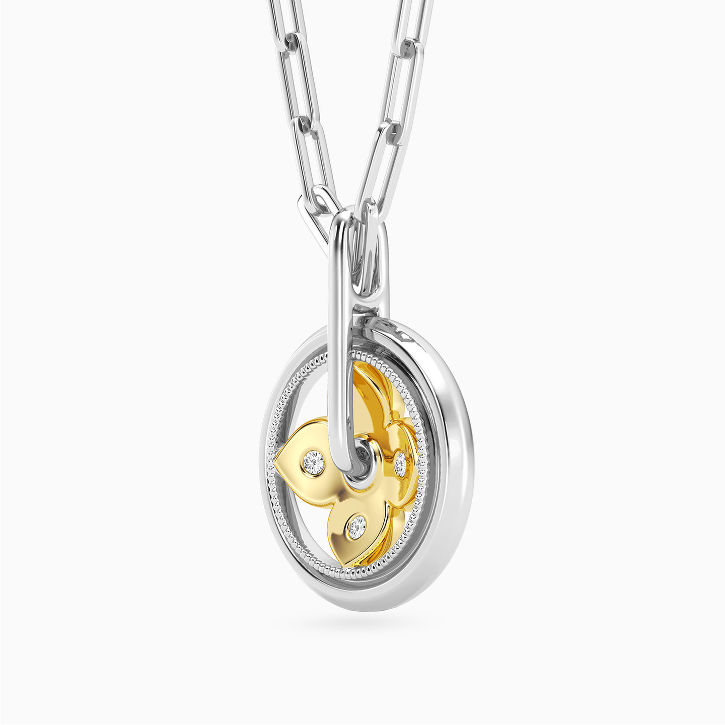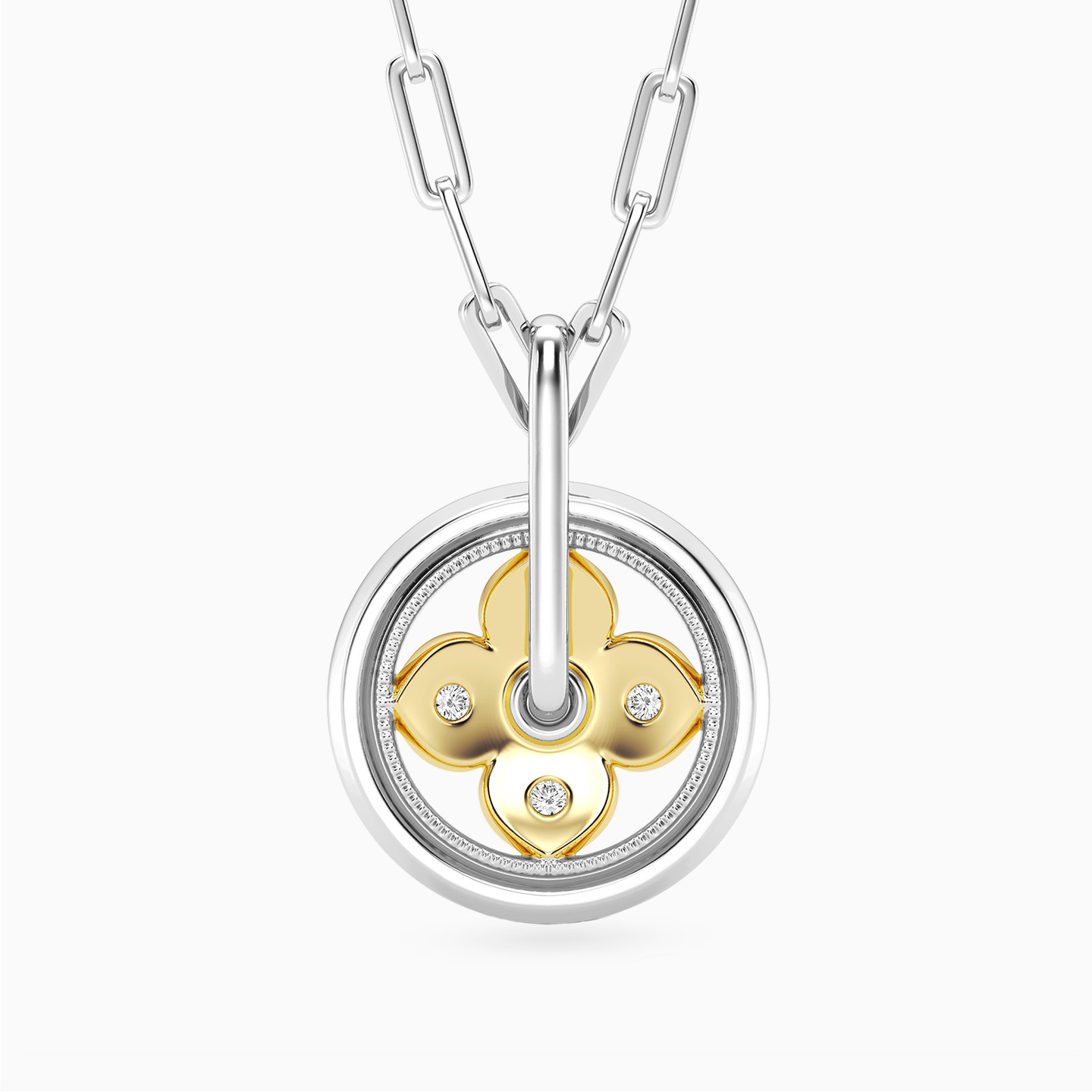 Discover affordable glamour and timeless style with this piece from Waves! This sterling silver necklace captivates with a round pendant featuring a delicate floral motif in warm golden tones, accented by sparkling lab-grown diamonds for a radiant touch of luxury. Perfect for those who love intricate artistry and modern elegance, it’s a unique piece to elevate everyday looks or special occasions.
