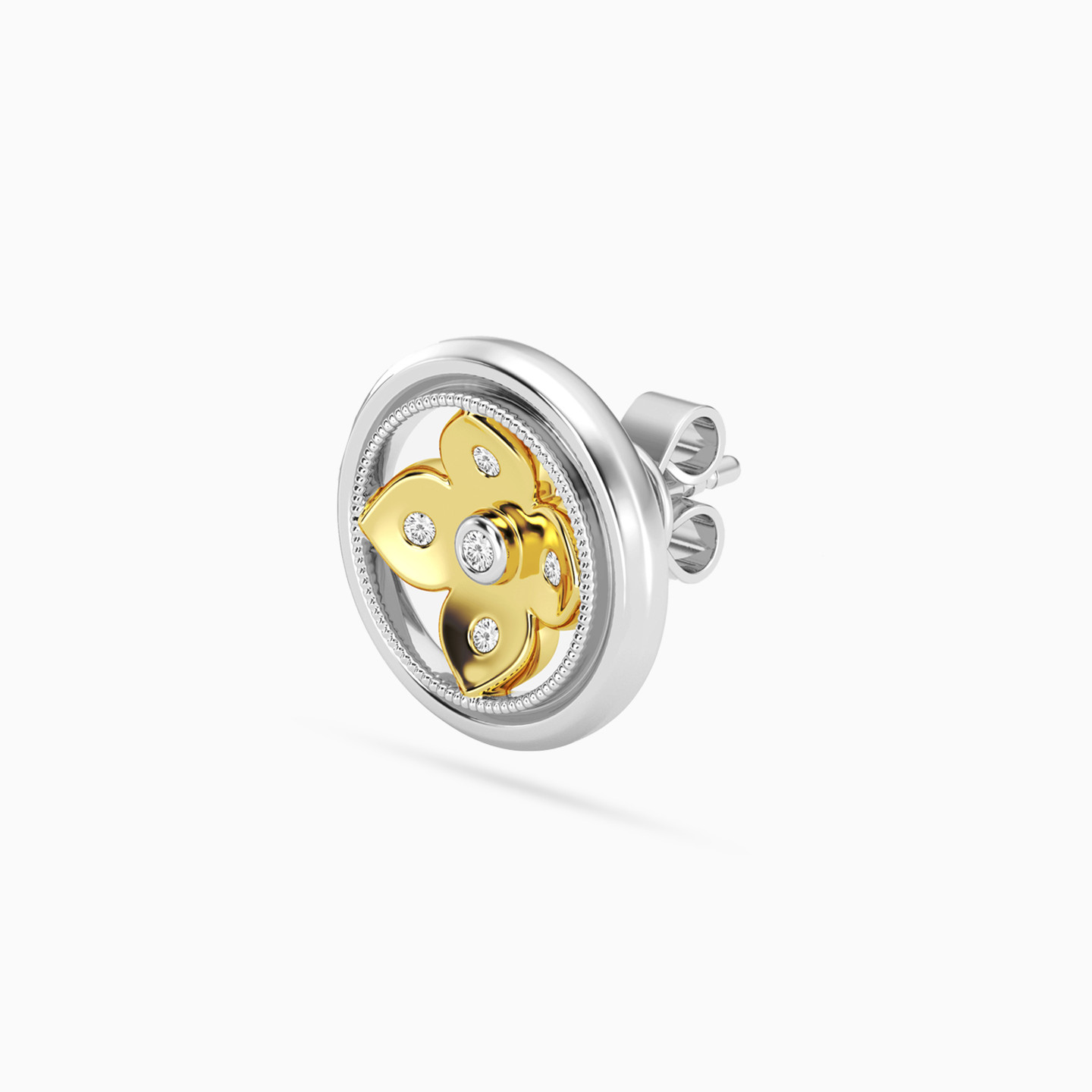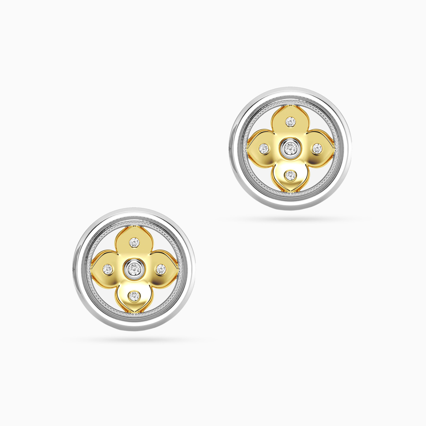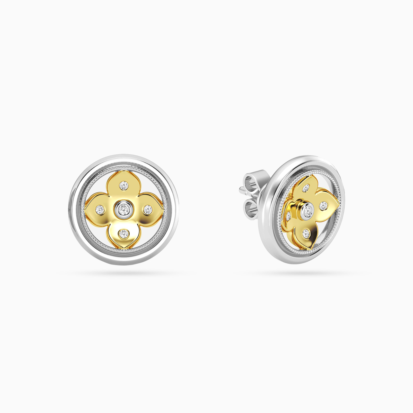 Discover affordable glamour and timeless style with this piece from Waves! These sterling silver stud earrings captivate with a round design featuring a delicate floral motif in warm golden tones, accented by sparkling lab-grown diamonds for a radiant touch of luxury. Perfect for those who love intricate artistry and modern elegance, they’re a unique pair to elevate everyday looks or special occasions.