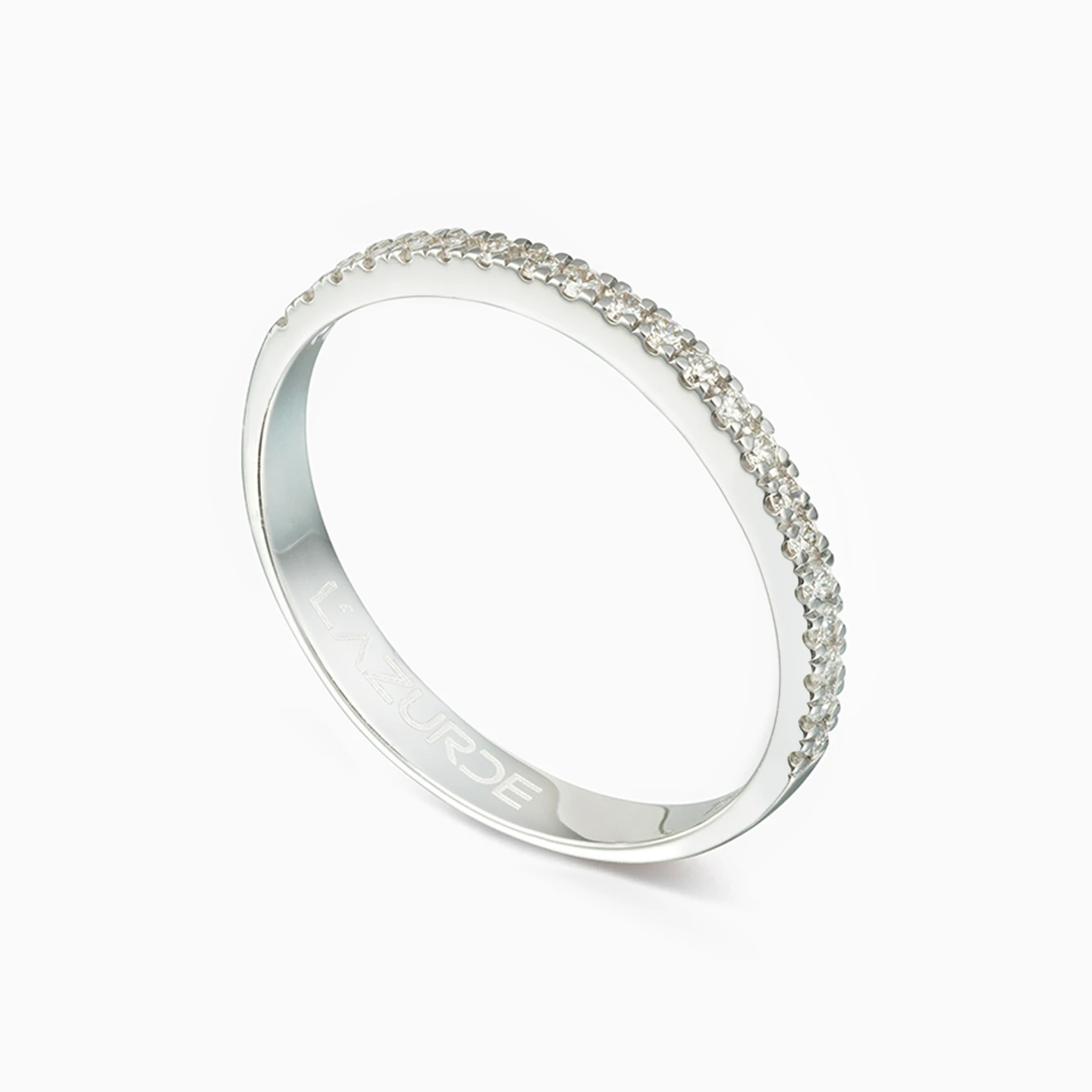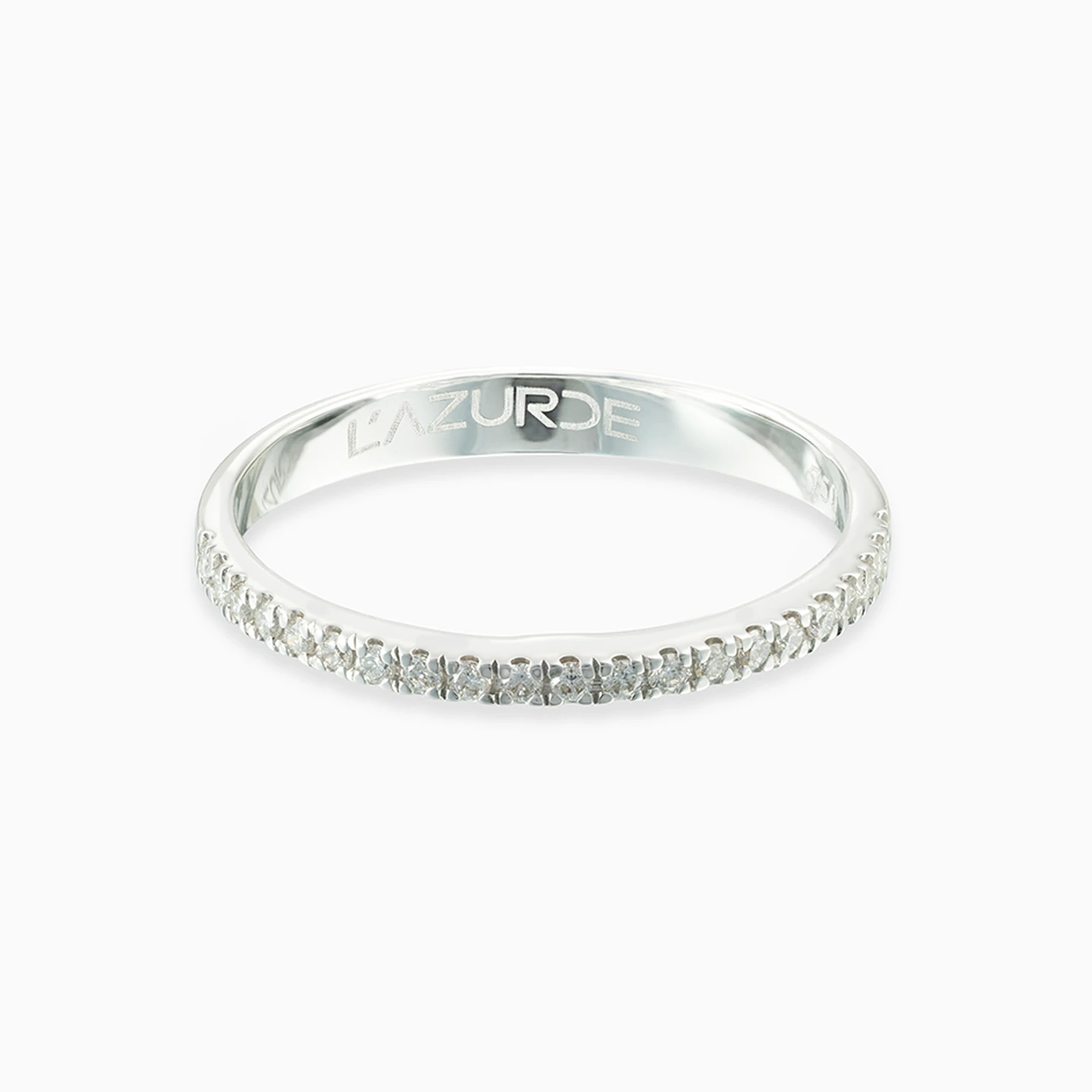 Step into a realm of eternal sparkle with this enchanting 18-karat white gold eternity ring from L'azurde Diamonds, where each moment is adorned with dazzling brilliance. Featuring a sleek band adorned with brilliant cut diamonds in a mesmerizing castle setting, this ring exudes timeless elegance with a touch of whimsy. Let the cascade of brilliant cut diamonds light up your life, ensuring every glance is met with awe and admiration!