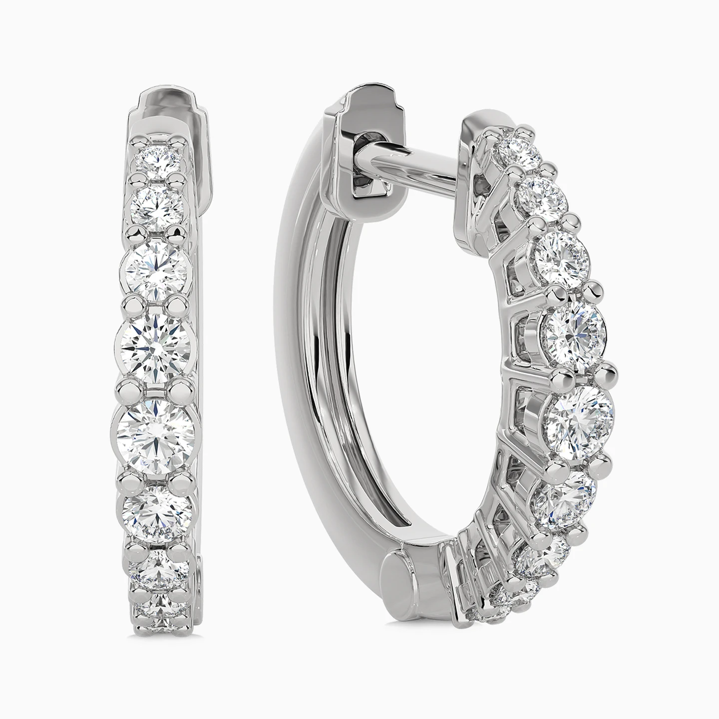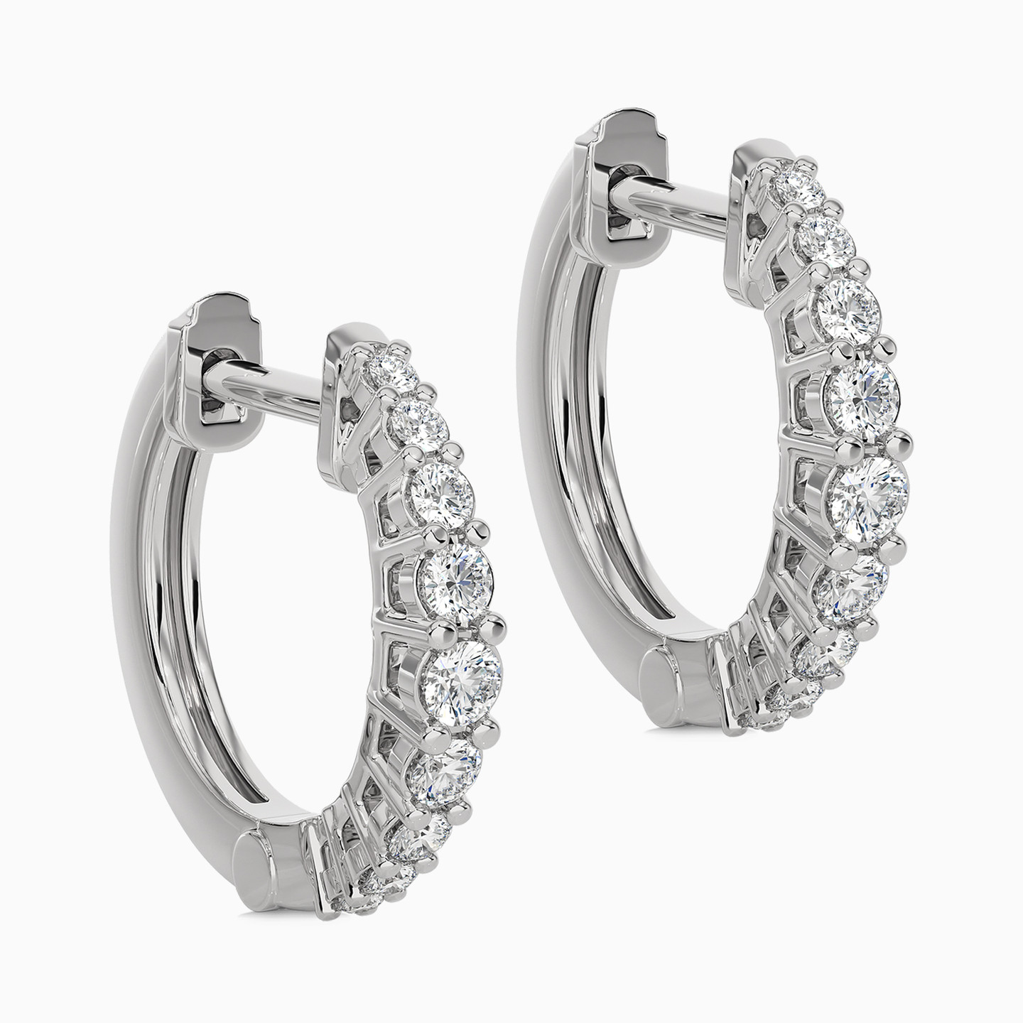 A captivating pair of 18-karat white gold hoop earrings from L'azurde Diamonds, a radiant fusion of elegance and glamour. Each hoop features an open frame base showcasing an array of brilliant-cut diamonds delicately set on prongs that shimmer with every movement. With their timeless design and irresistible allure, these earrings are perfect for a workday or a date night with bae.