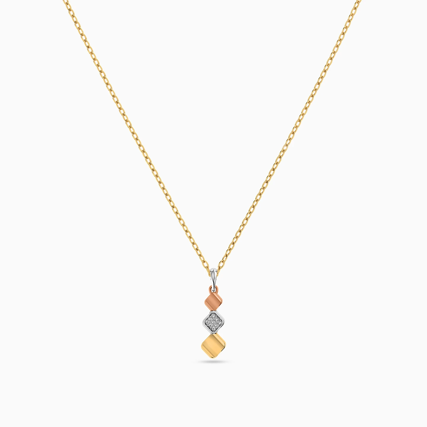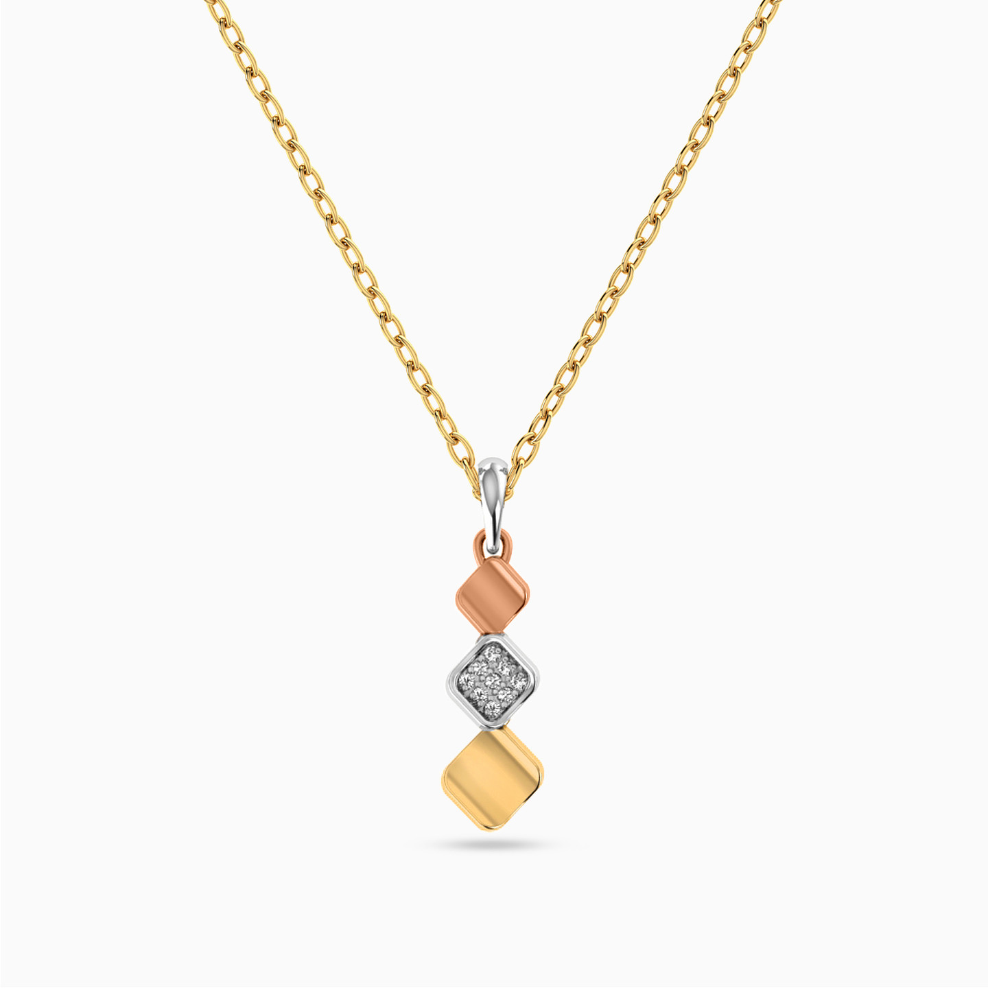 We love pieces like these that give off a contemporary vibe with their high street style. This drop necklace features tri-colored squares, accented with diamonds, that's suspended from an 18-karat yellow gold chain. We think it will make the perfect addition over a low neckline and transition with you from day to evening.