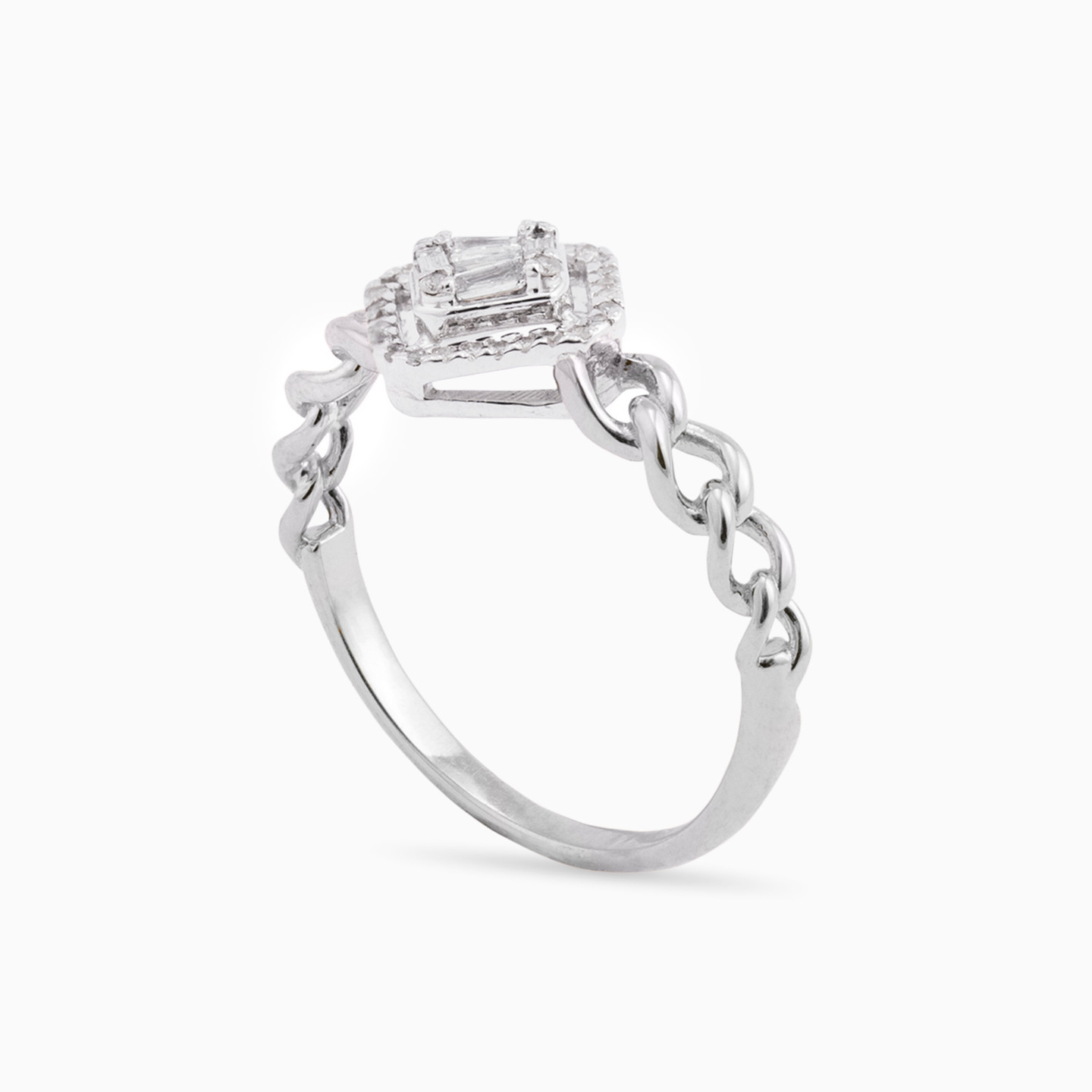 Make a stunning statement when the moment calls for sophisticated sparkle. Beautifully crafted in 18-karat white gold, this spectacular ring features an 18-karat yellow gold chain shank and an exquisite square centerpiece dotted with 0.18-carat diamonds. We love how this ring adds instant radiance to office wear or weekend attire, making it perfect for casual or formal occasions.