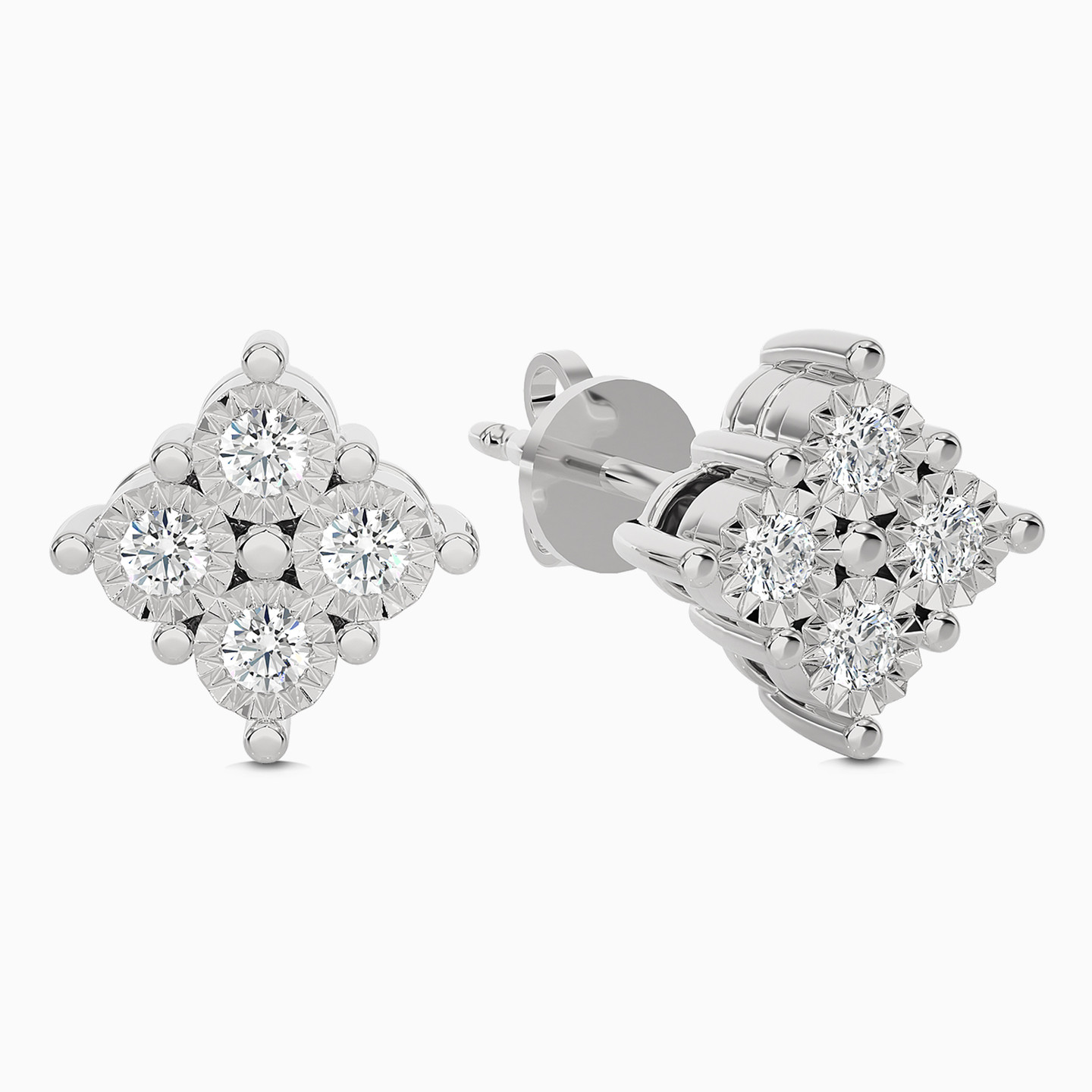 Square Diamond Stud Earrings in 18K Gold
