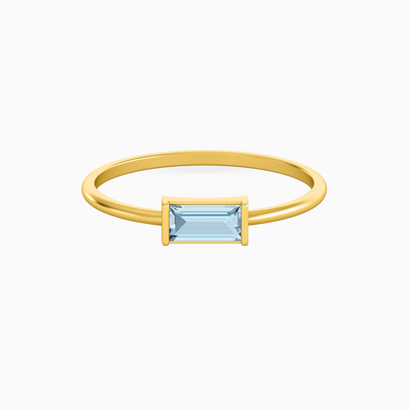 Uncover maximum brilliance in a minimal design with this ring from Miss L’. Studded with a baguette cut aquamarine to the center, this versatile ring can be styled on its own for a classic day time look or stacked with similar bands on different fingers for a stunning evening look.