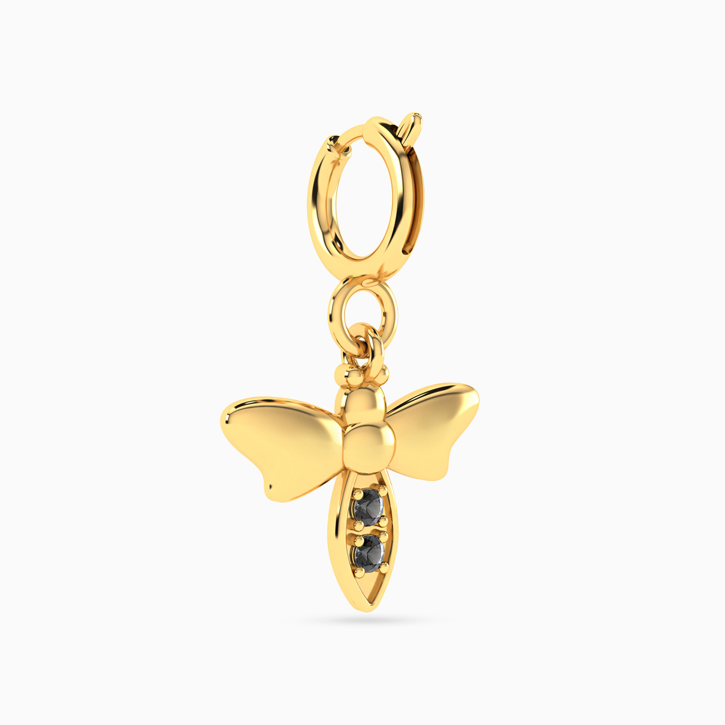 Bee Shaped Black Stones Charm in 14K Gold