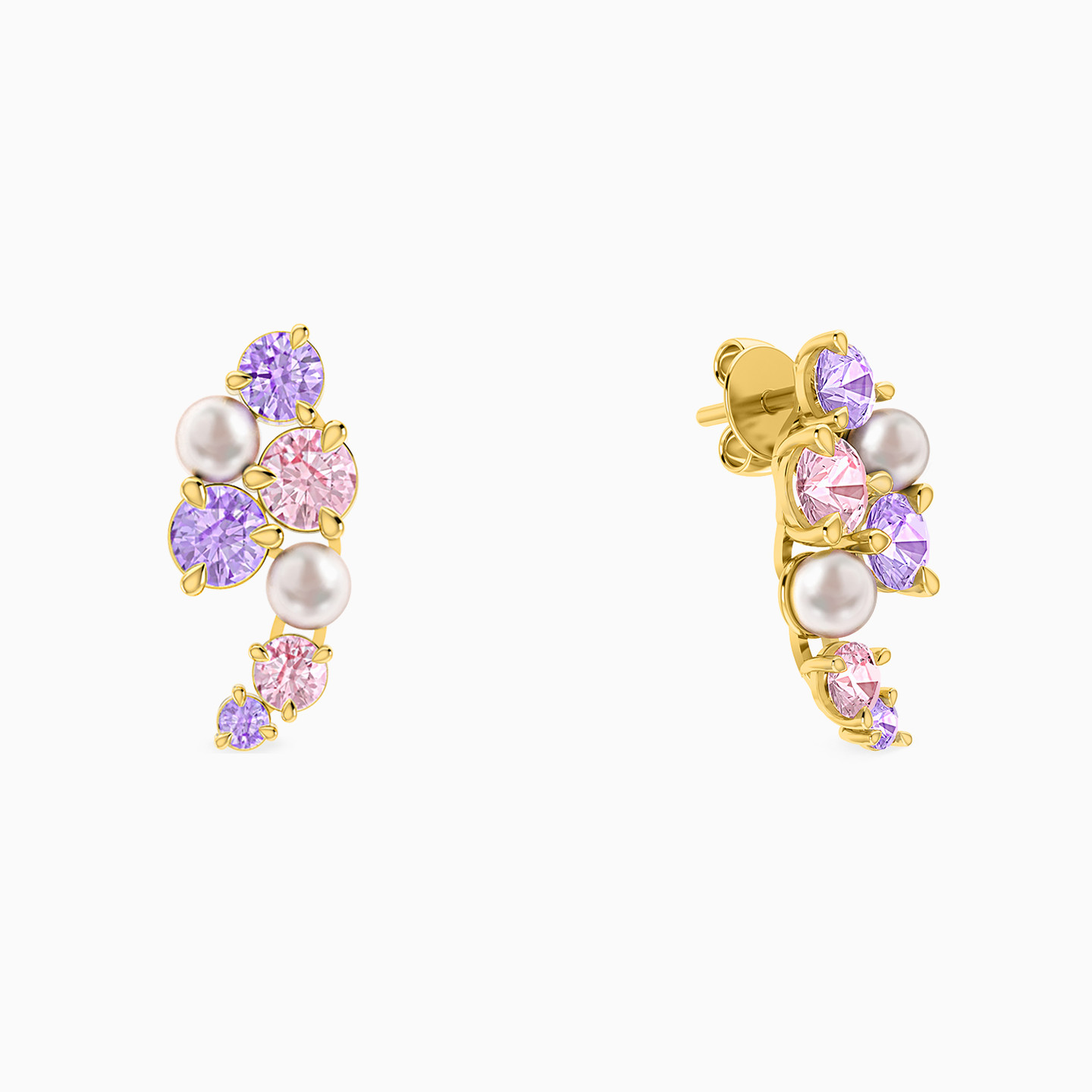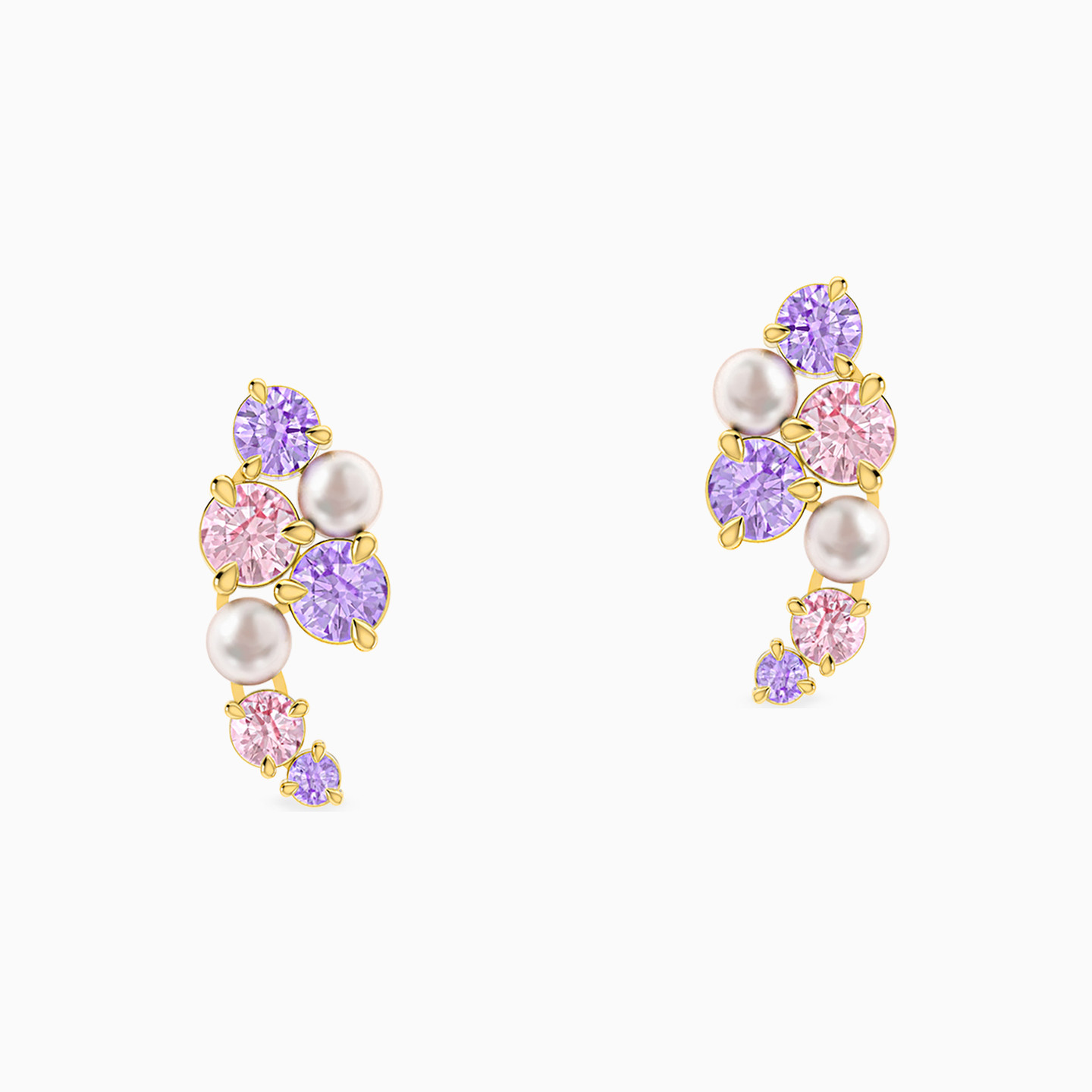 Crafty and charismatic, these ear studs from Miss L’ are one of a kind. We love the cluster of pink and blue stones and pearls that are set so meticulously in an 18-karat yellow gold cast. Wear it at an evening gala with a plain black dress to highlight its beauty.