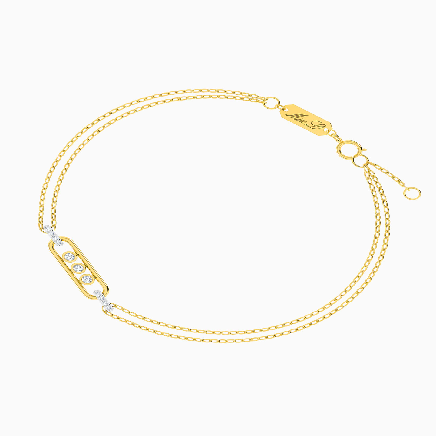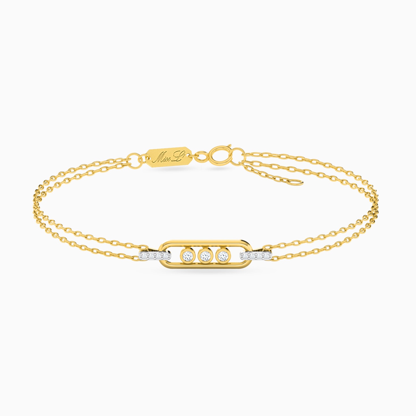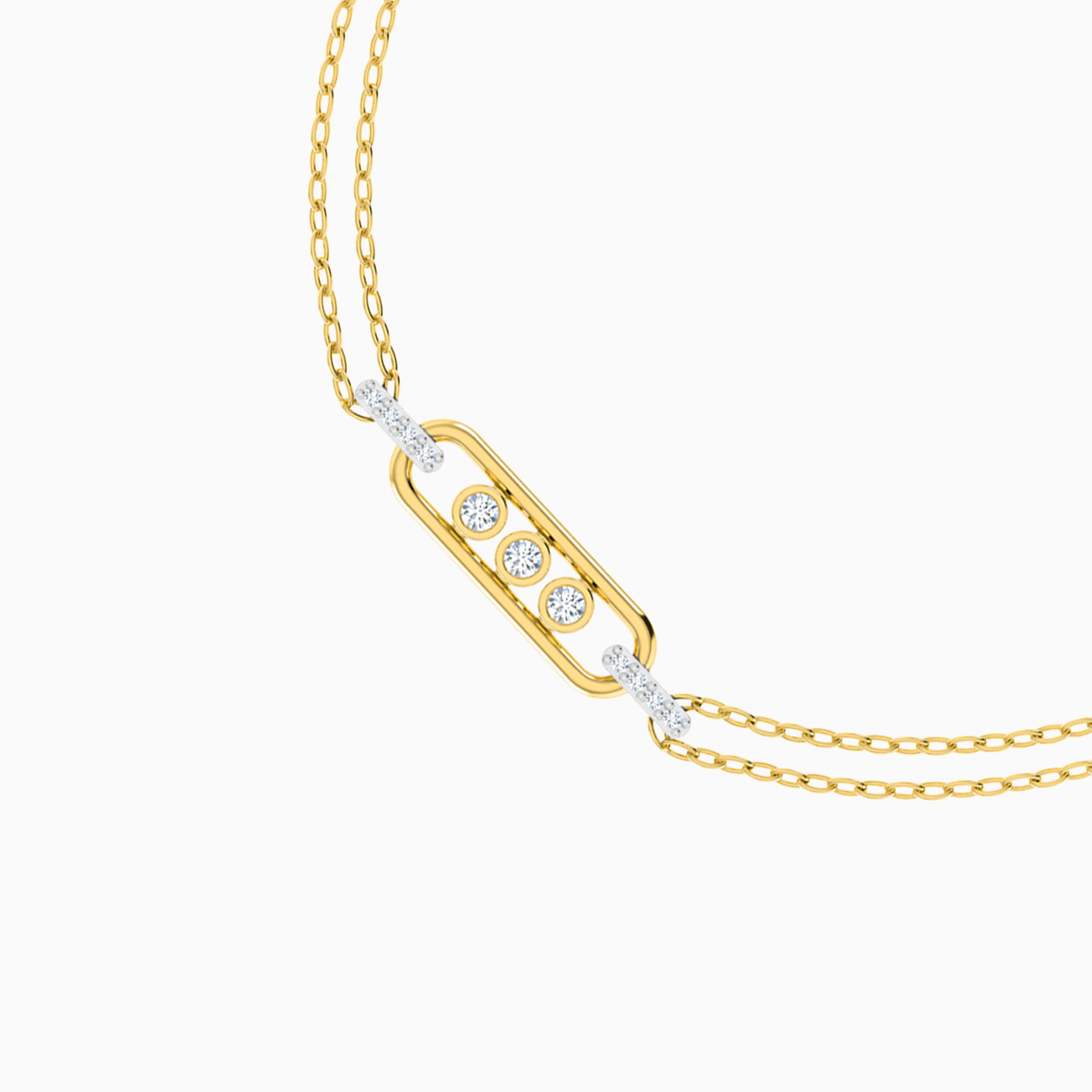 Modern charm, timeless sparkle. This sleek double-chain bracelet showcases a geometric centerpiece adorned with luminous diamonds—perfect for daily elegance or thoughtful gifting.