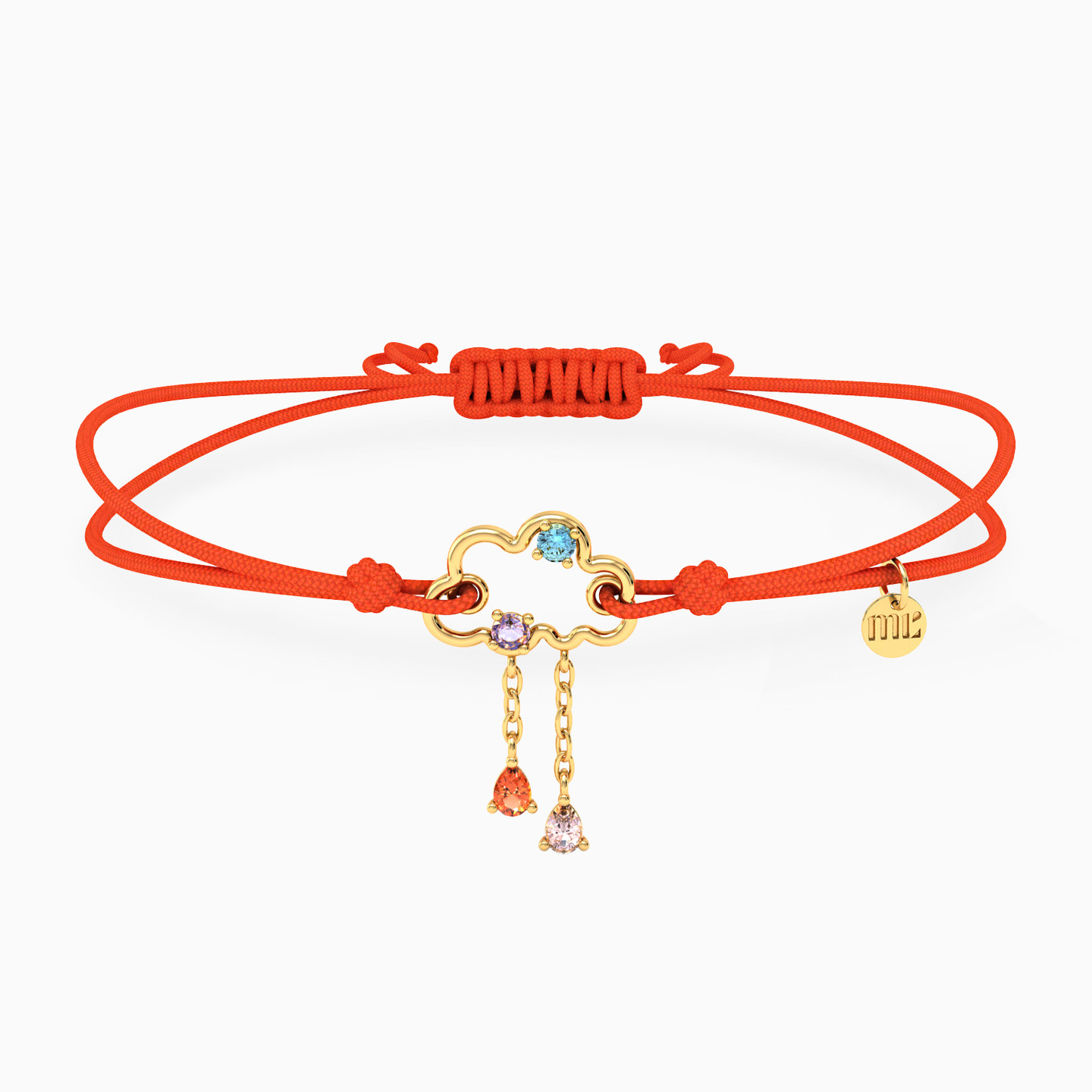 Make a wish and let it shine. This bright red cord bracelet features a dainty cloud charm with dangling droplets in soft rainbow tones—playful, colorful, and full of hope. Perfect for stacking or gifting.