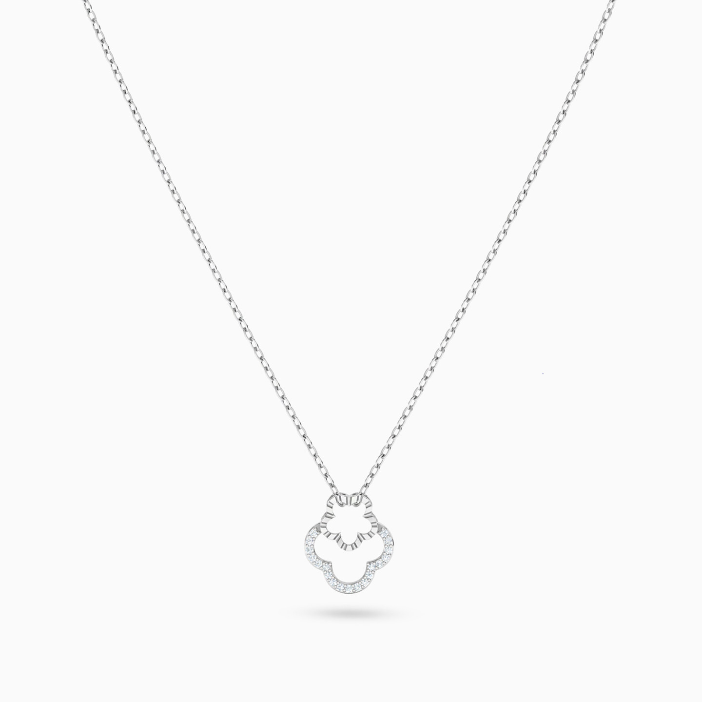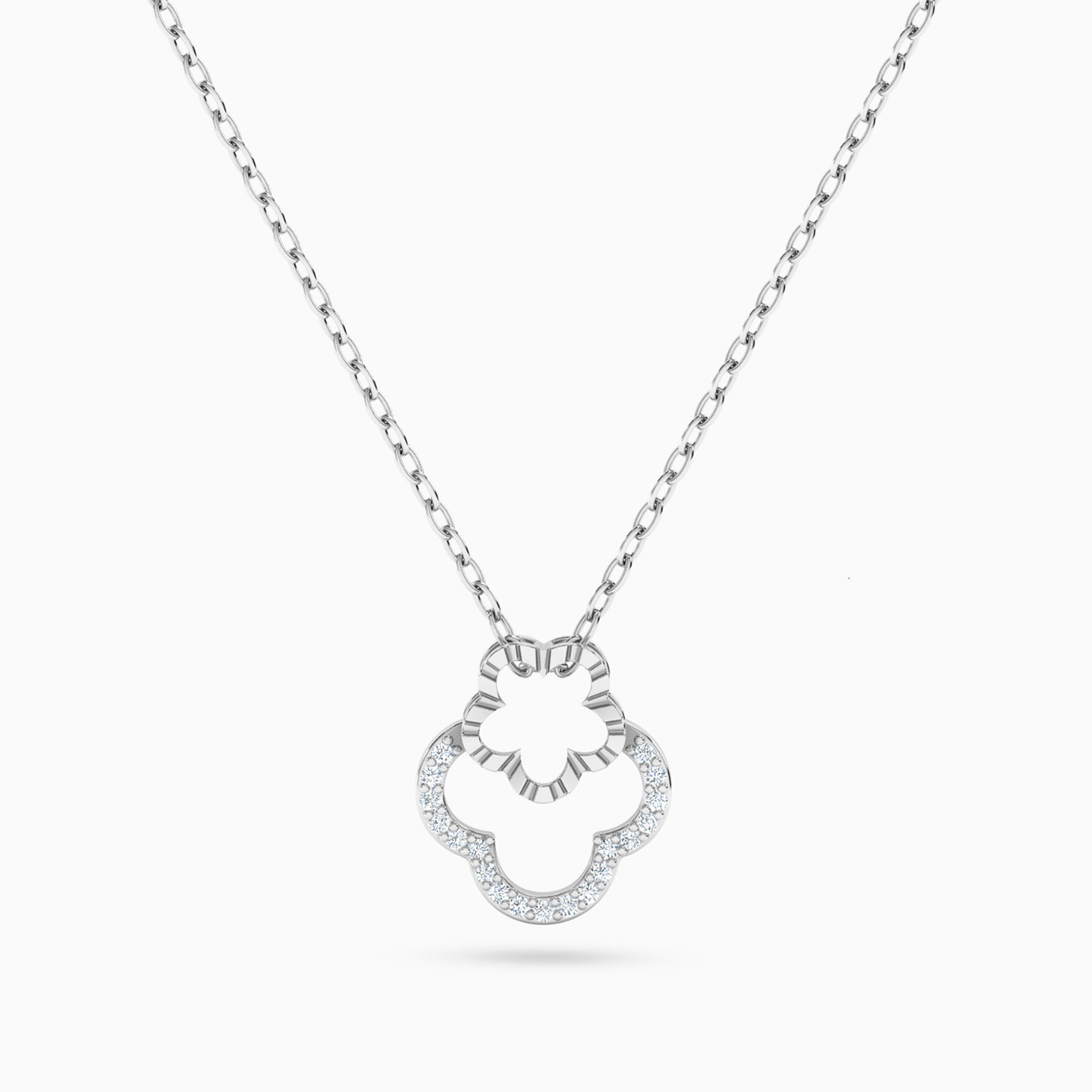 Add this must-have accessory to your jewelry box and wear it when you need an instant boost of feeling fabulous. This pretty pendant from L'azurde Diamonds features two floral outlines—one in notched 18-karat white gold, the other dazzling with brilliant cut diamonds. We love how this chic pendant is picture perfect for work days and evenings out with family and friends.