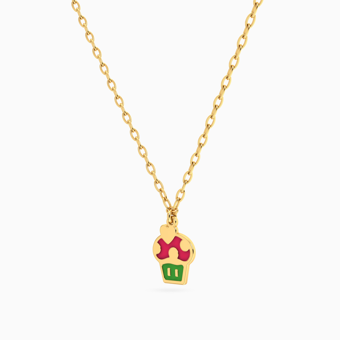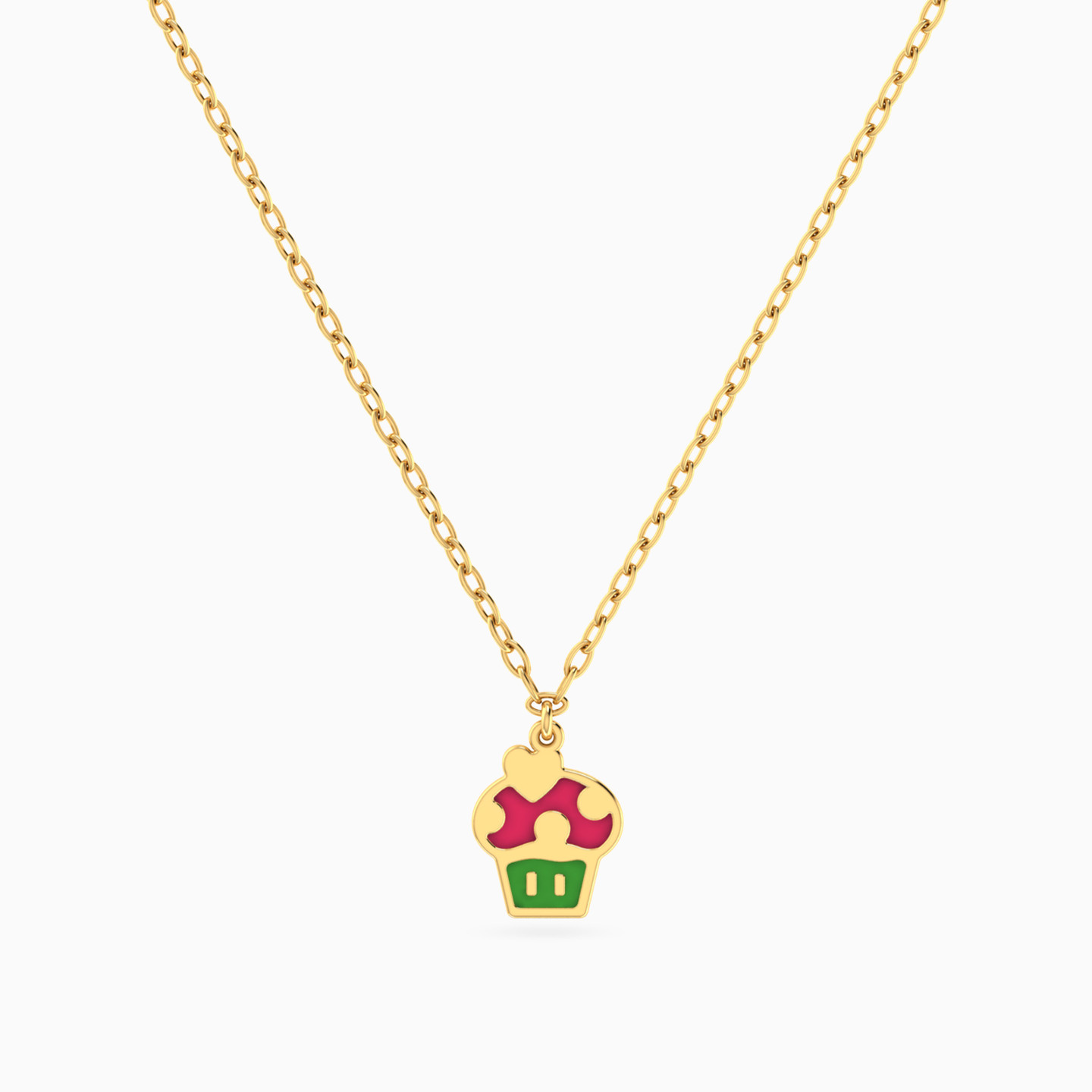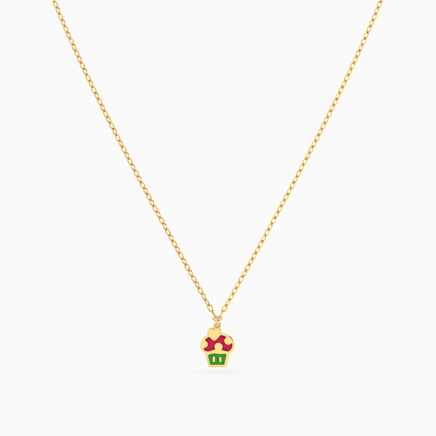 Kids Cupcake Enamel Coated Necklace in 14K Gold
