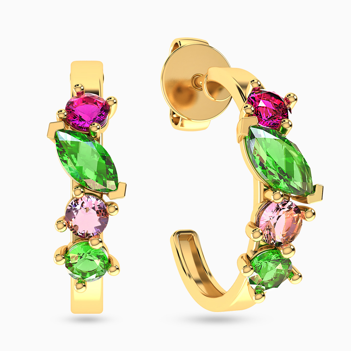 Multishaped Colored Stones Hoop Earrings in 18K Gold