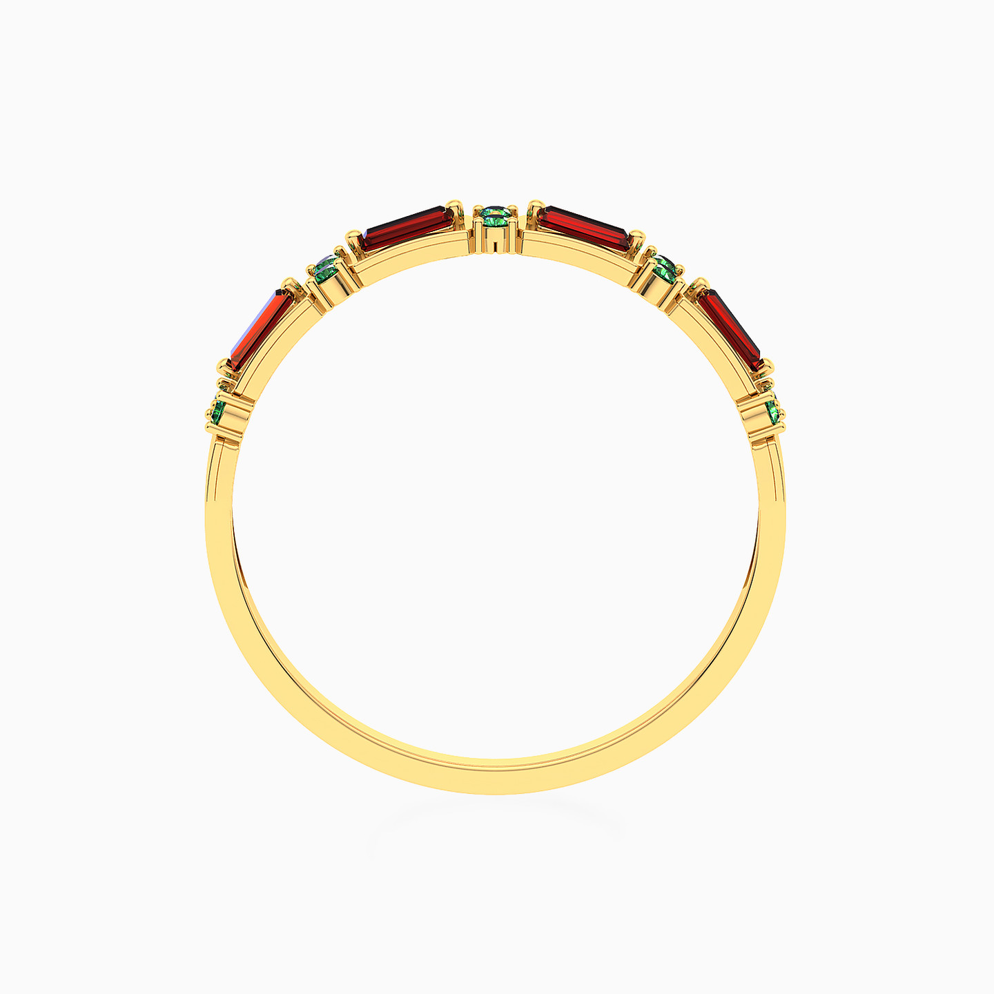 For a colorful take on the ring stacking trend, you'll want to get your hands on this eye-catching ring from Miss L'. Beautifully crafted in 14-karat yellow gold, this divine ring features vibrant colored stones in round and baguette shapes. We love how this ring brings a pop of color and sparkle to office attire as well as your favorite casual or evening wear.