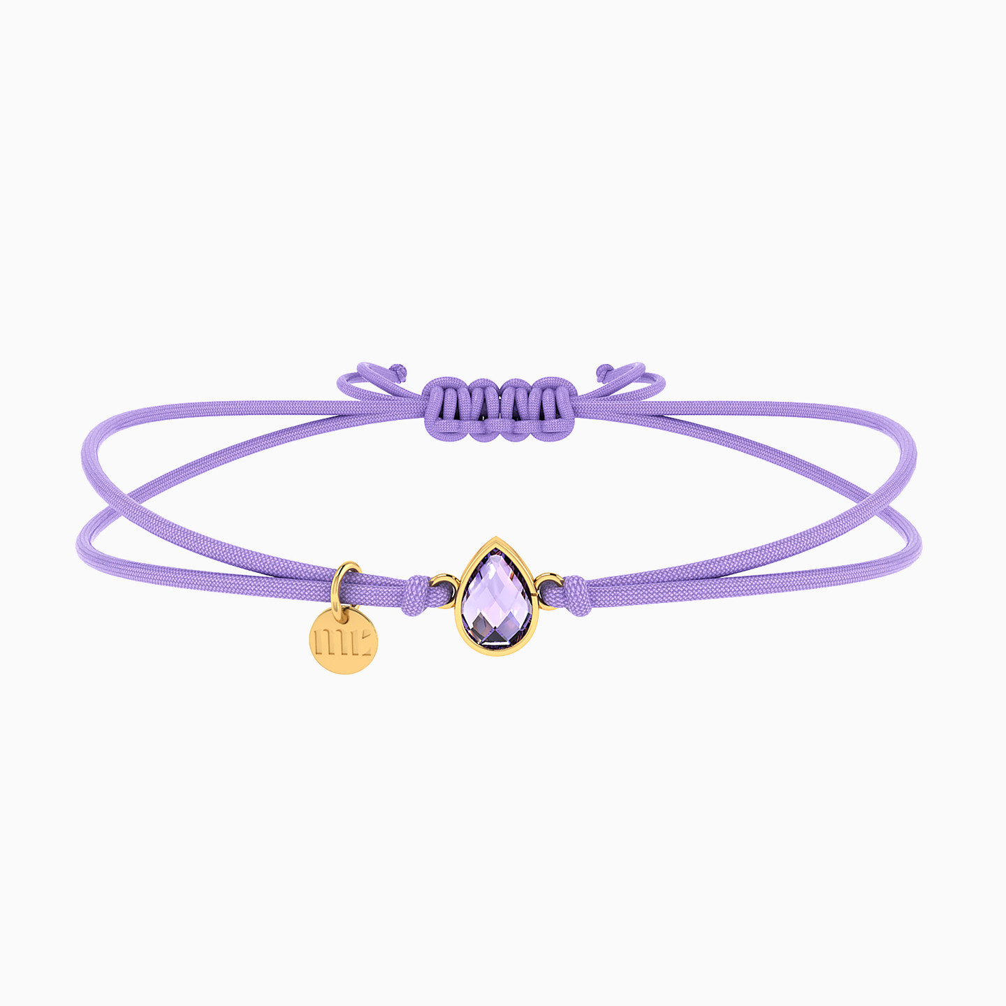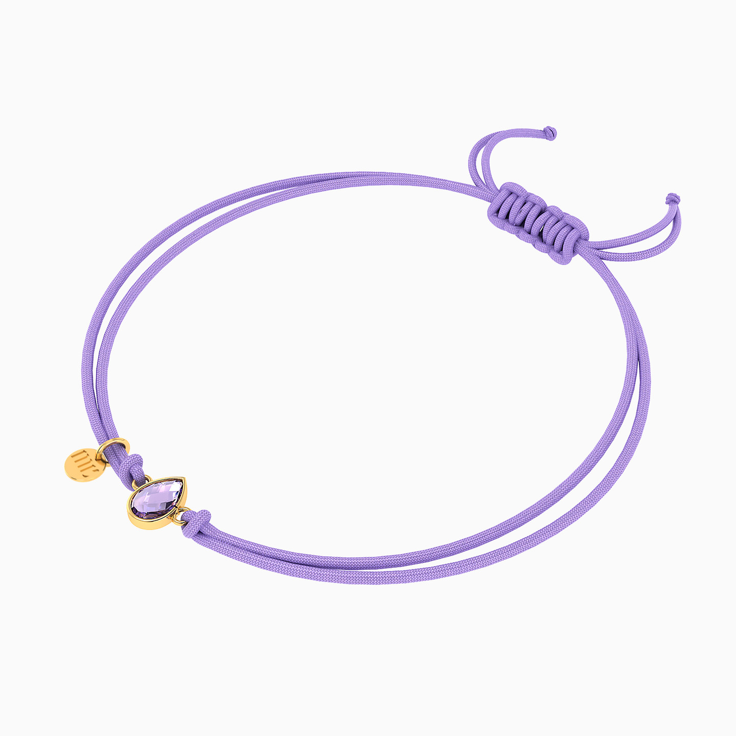 Pear Purple Stone Cord Bracelet in 14K Gold