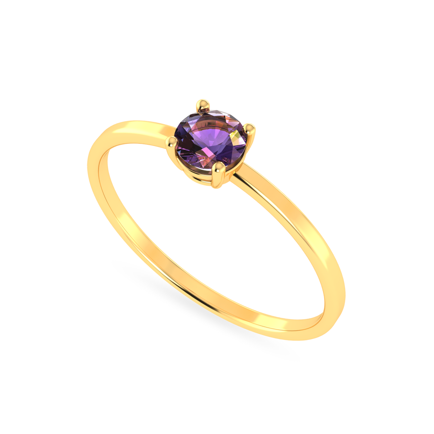 Add sparkle to your collection with this stylish piece from Miss L'! This elegant statement ring, crafted in glowing yellow gold, features a single round-shaped purple stone at its center—a perfect blend of rich color and timeless charm. Designed to make a lasting impression, this piece adds a bold yet graceful touch to your look, whether worn solo or layered with your favorite accessories.