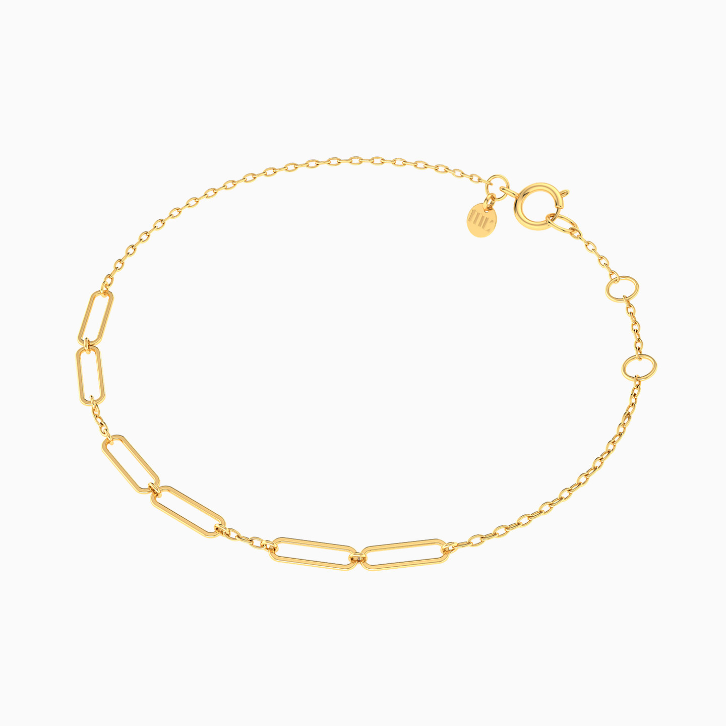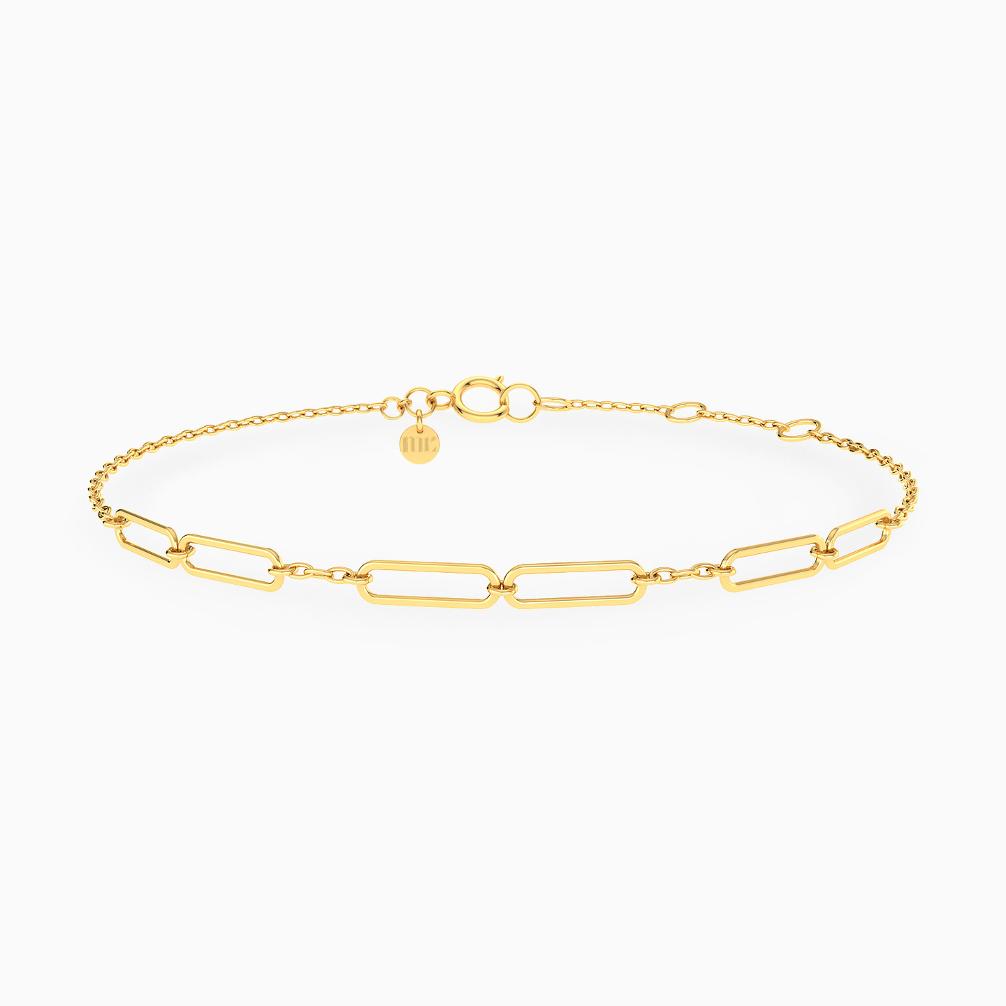 A playful jingle for your wrist! This 14-karat yellow gold chain bracelet from Miss L' features a dainty links chain that hosts a parade of rectangle motifs, creating a rhythm of delightful tinkles with every move. This bracelet is perfect for adding a touch of whimsical charm to your everyday ensemble!