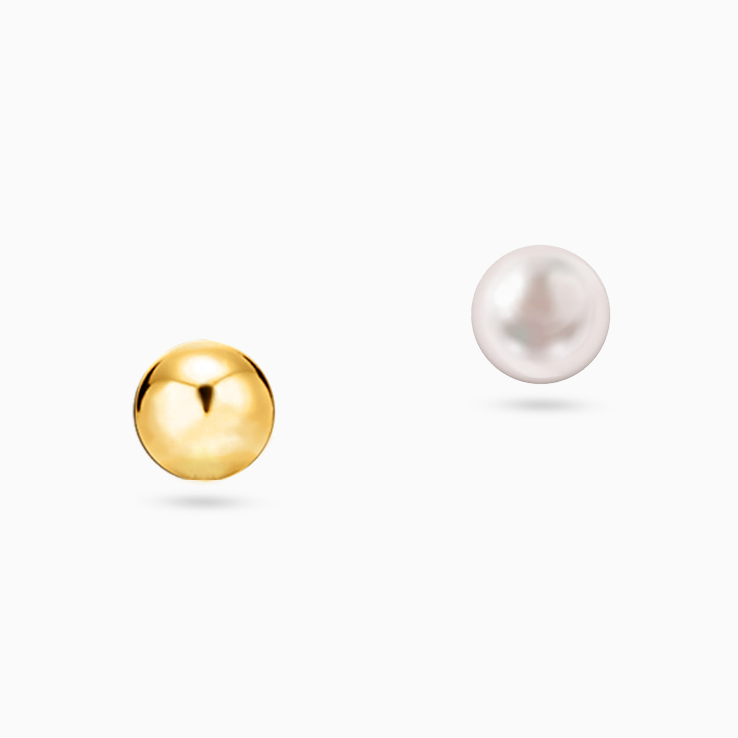 Keep it subtle yet trendy with these mismatched pair of studs from Miss L'. Designed with a pearl stud on one end and a yellow gold bead stud on the other, these earrings are a sure conversation starter. These 14-karat yellow gold studs are versatile and elegant enough to style with just about any outfit in your closet.