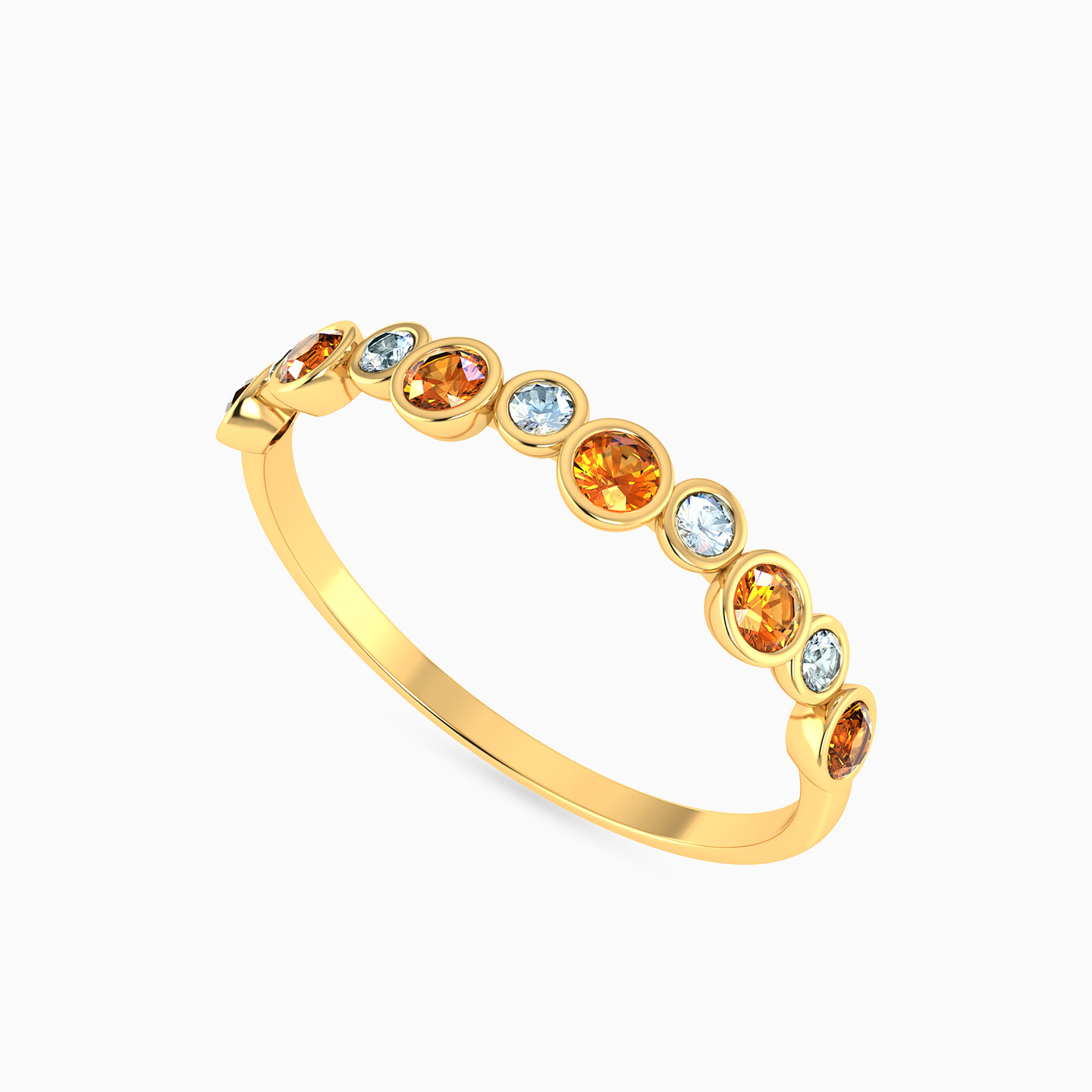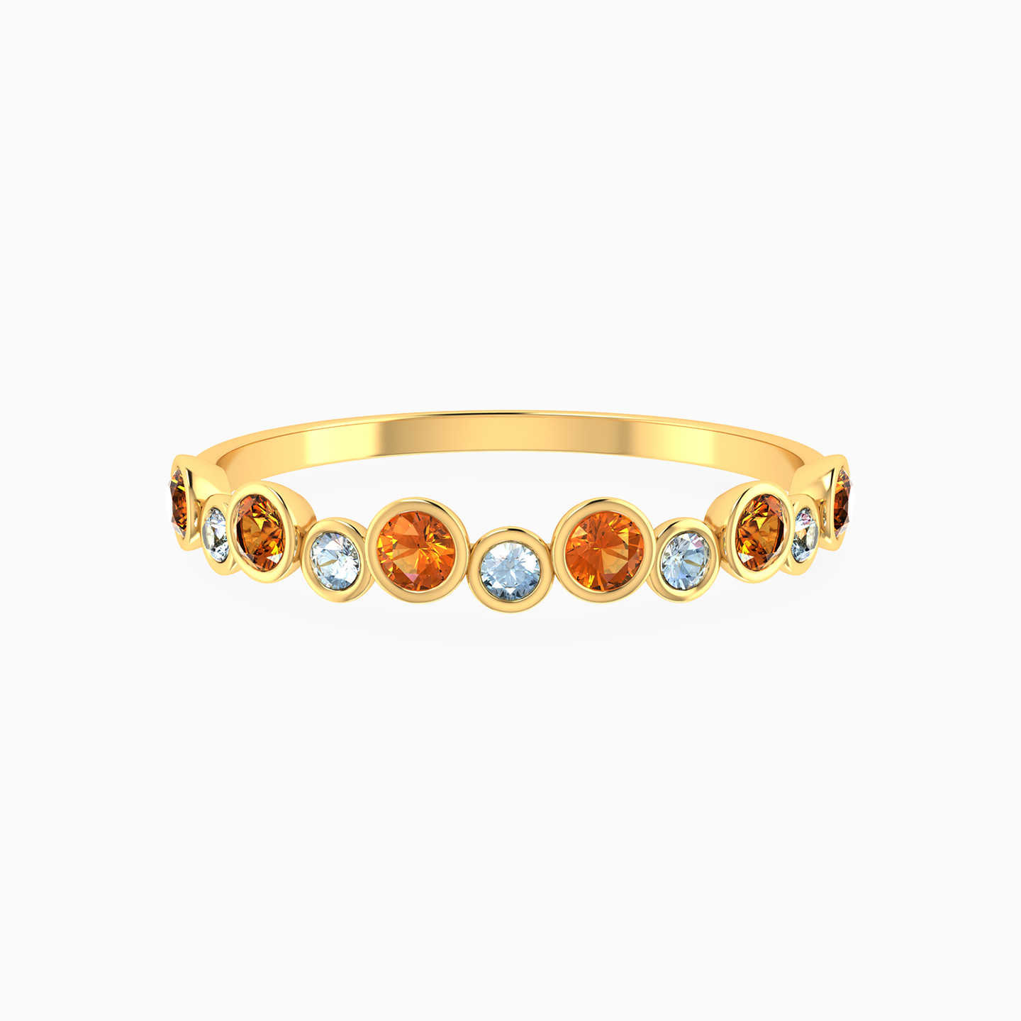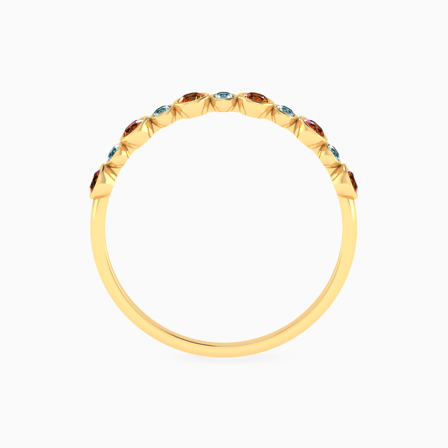 Captivating color and elegance are within reach with this on-trend colored stone stackable ring from Miss L'. The prettiest stack starts with this mesmerizing 14-karat yellow gold ring, beautifully crafted with colored stones that are bezel-set in a zig zag fashion along the sleek band. We love this ring worn solo or stacked with plain gold bands on either hand (or both).