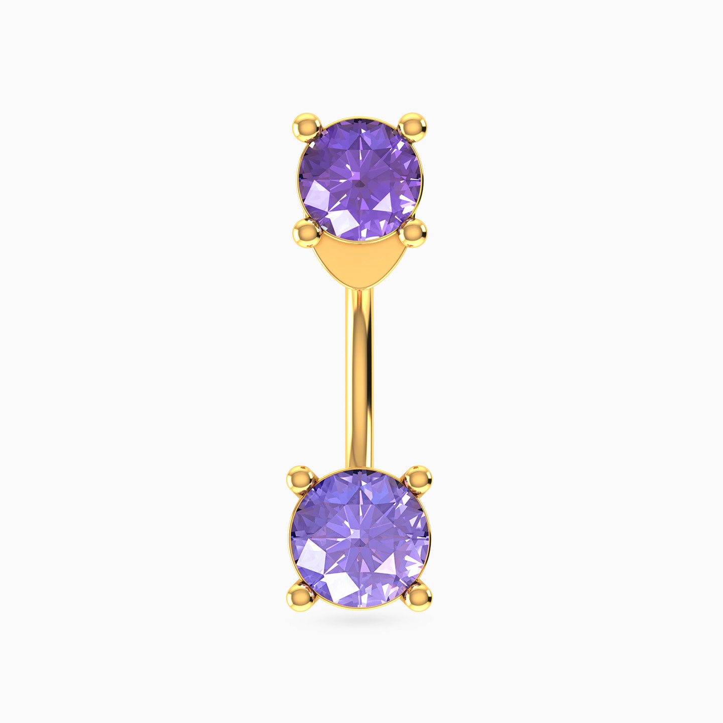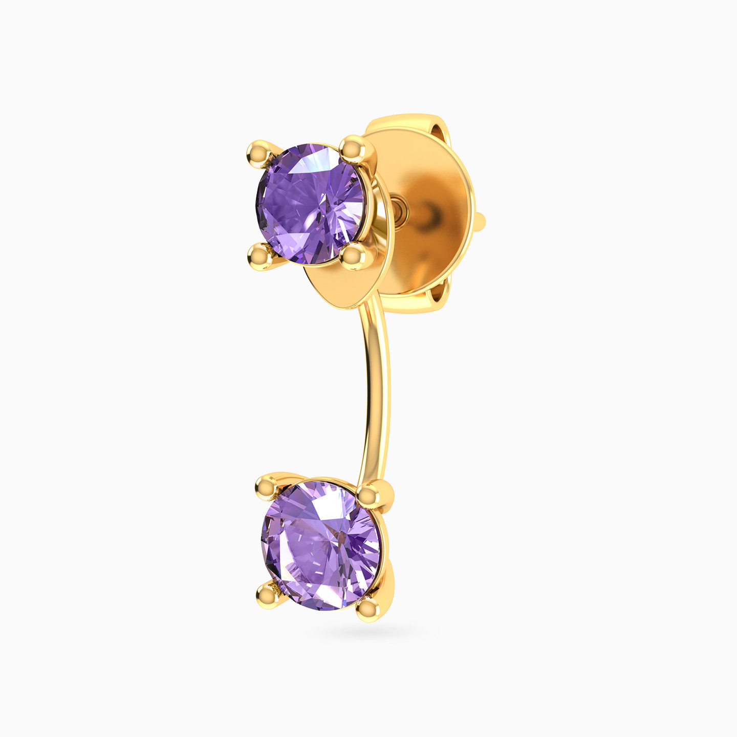 Round Shaped Purple Stone Jacket Stud Earring in 14K Gold - 1 Piece