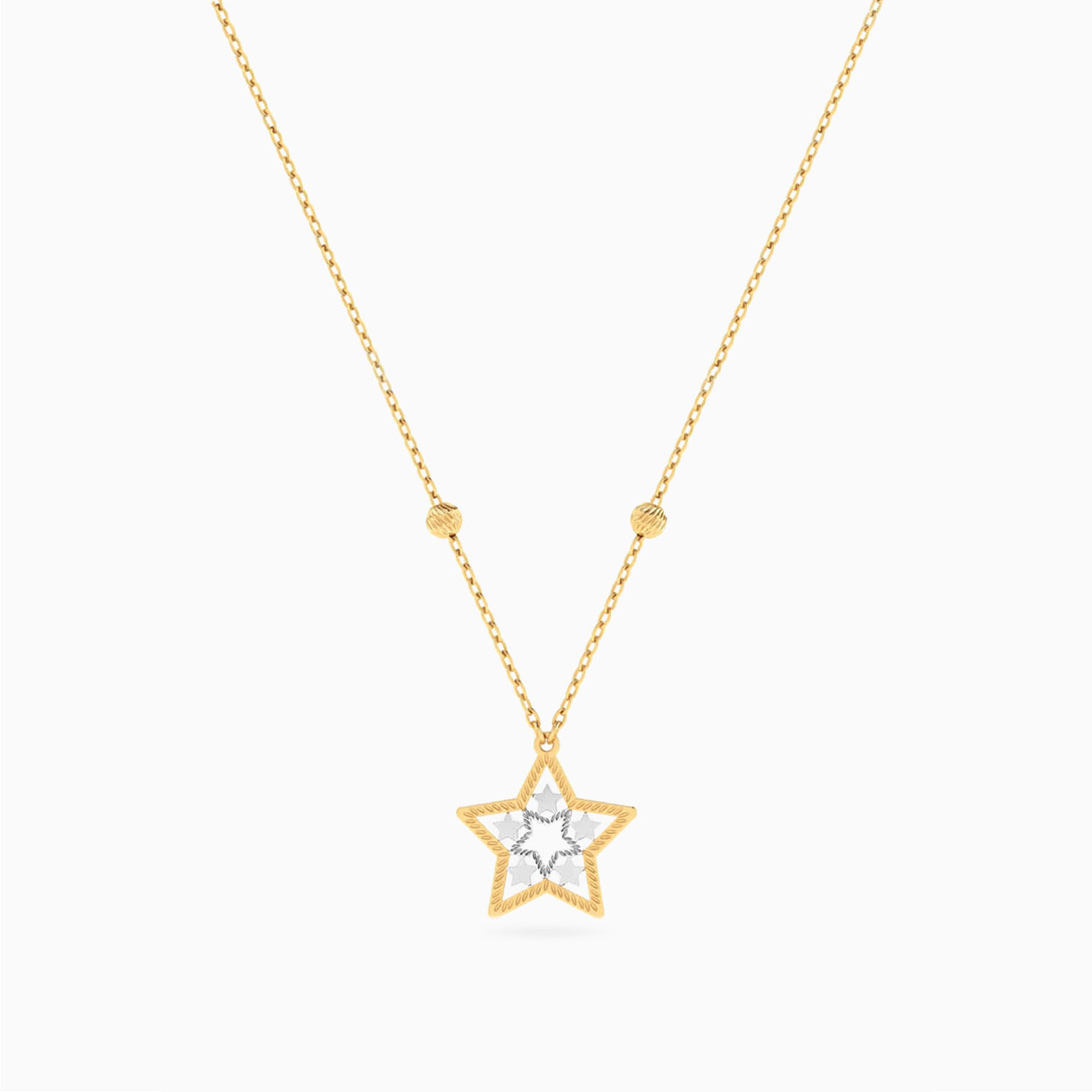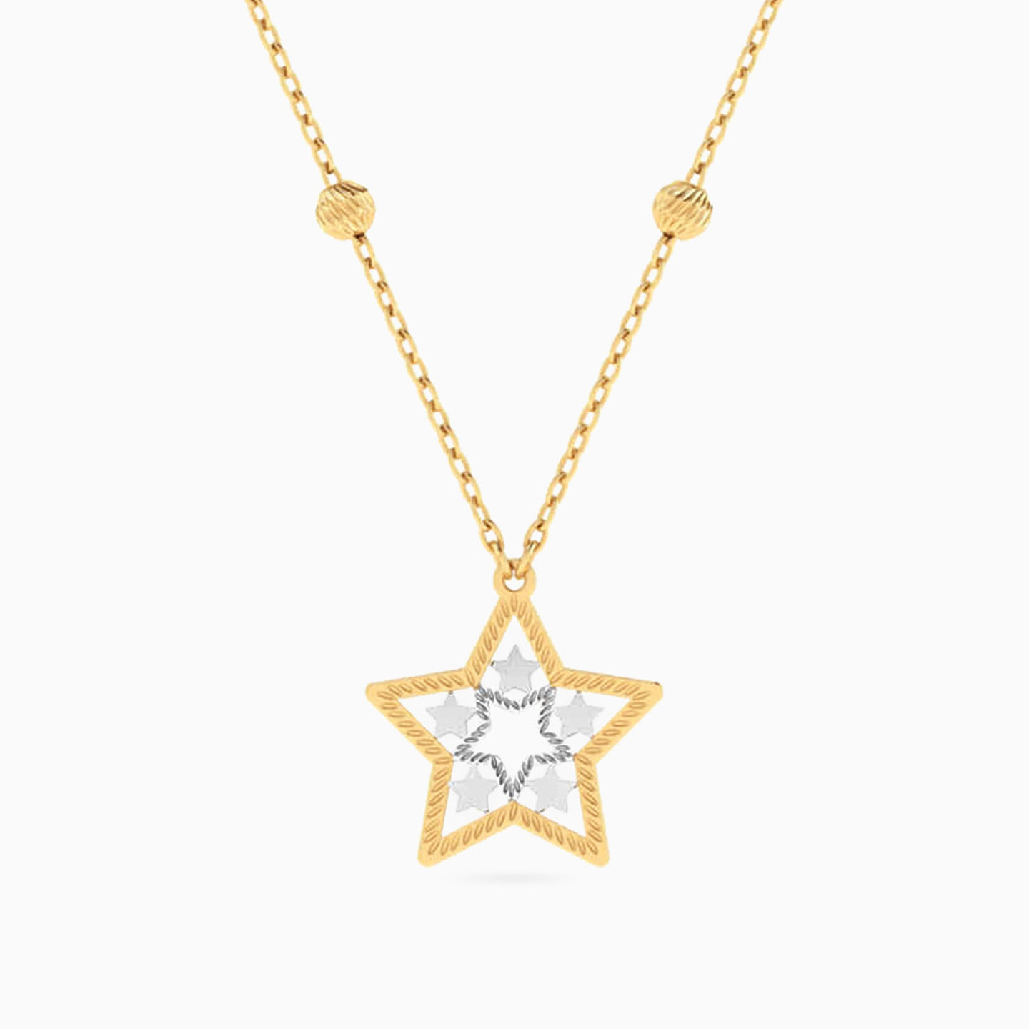 Shining bright in all its glory, this star necklace from Miss L’ will up your style in no time. We love the two-tone star pendant that features miniature stars within the frame and the 18-karat yellow gold chain it is suspended from. Add this to your weekend outfit or evening look.