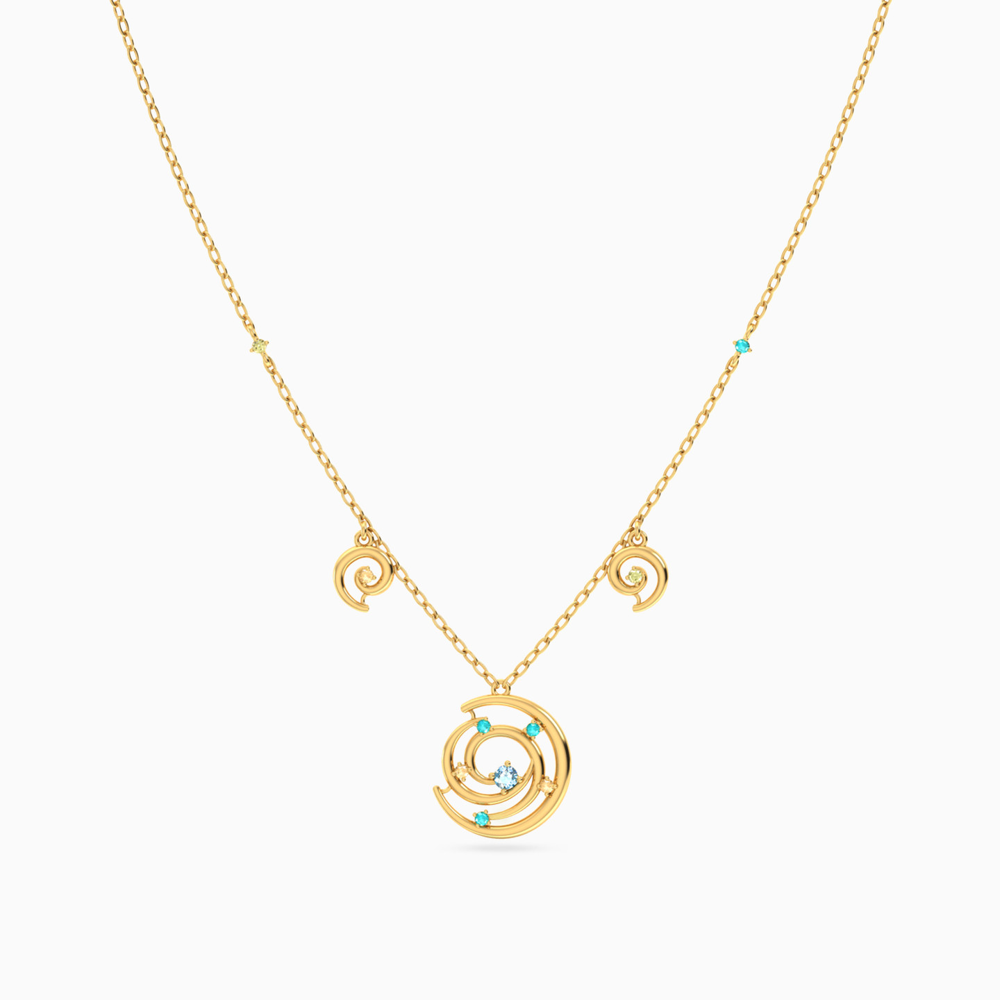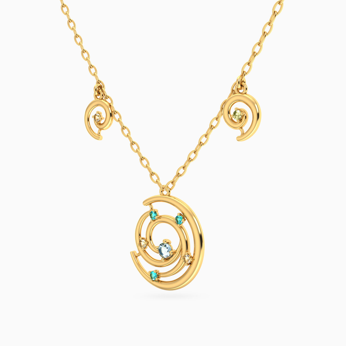 Showcase your unique personality by wearing this eye-catching chain necklace from Miss L'. Beautifully crafted in 14-karat yellow gold, this gorgeous chain necklace represents the Air element, with wind charms dotted with gorgeous multicolored stones. The Air element belongs to the zodiac signs Libra, Aquarius and Gemini who share the common traits of bring curious, intellectual, clever and the "winds of change" in the world. This is the ultimate daytime and evening piece for every woman, regardless of your zodiac sign.