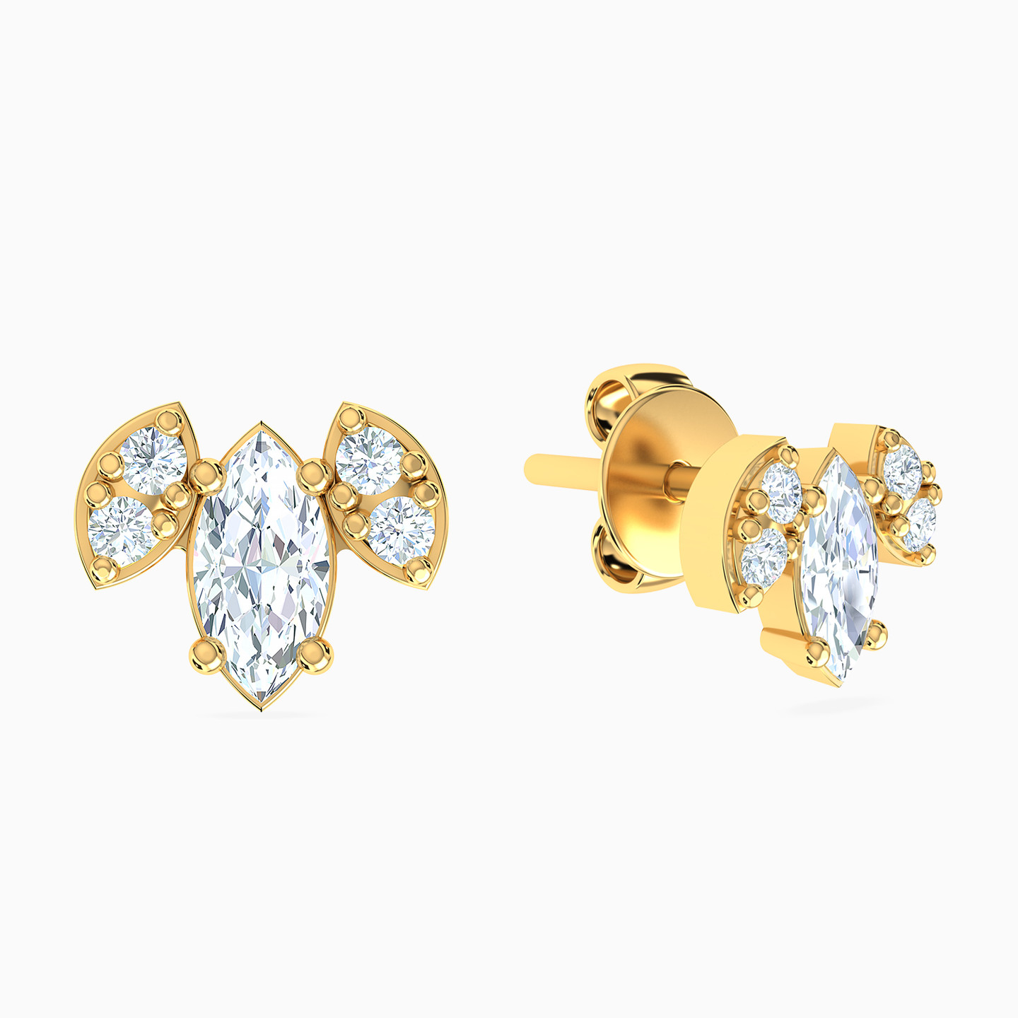 Marquise Cubic Zirconia Stud Earrings in 18K Gold