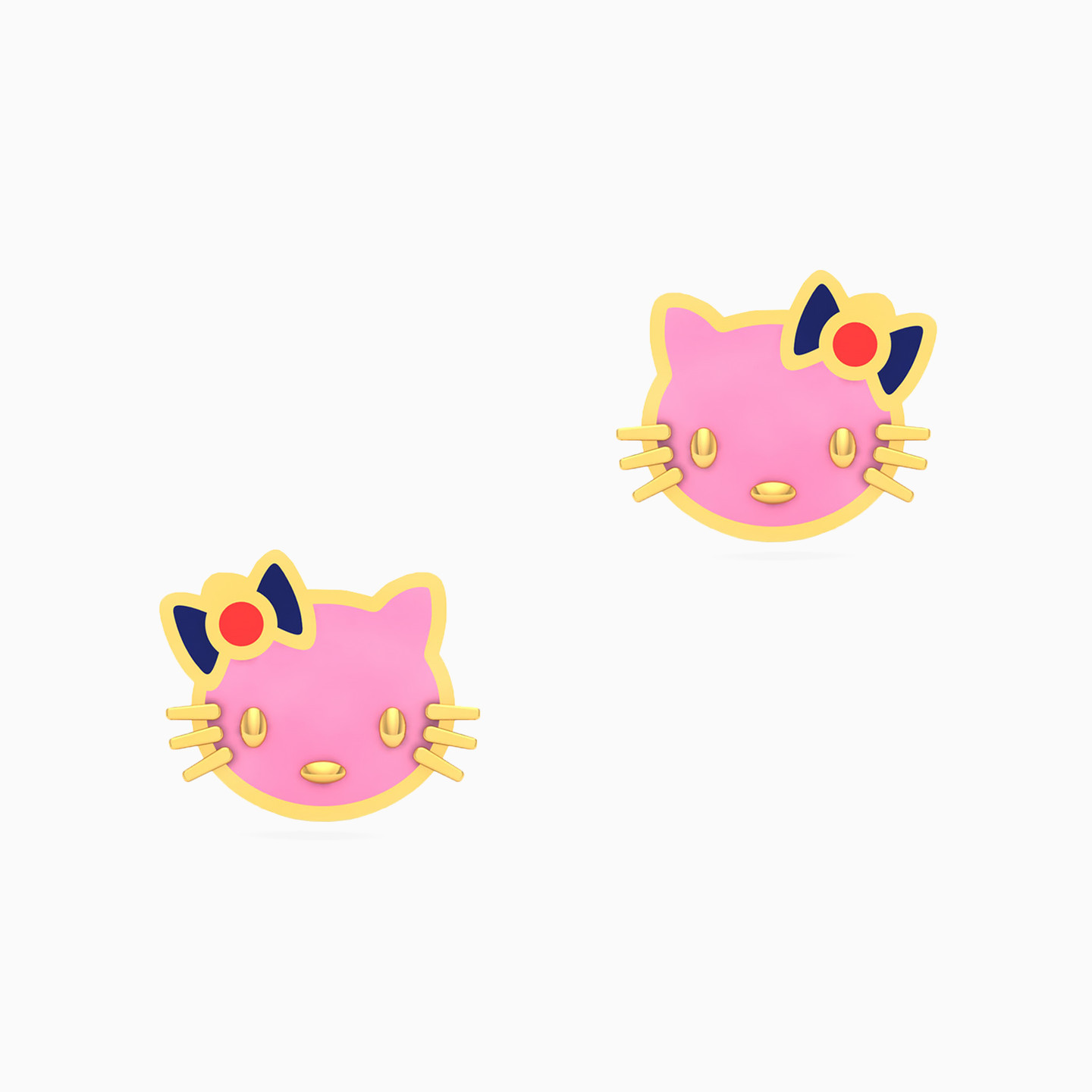 Kids Hello Kitty Enamel Coated Stud Earrings in 18K Gold