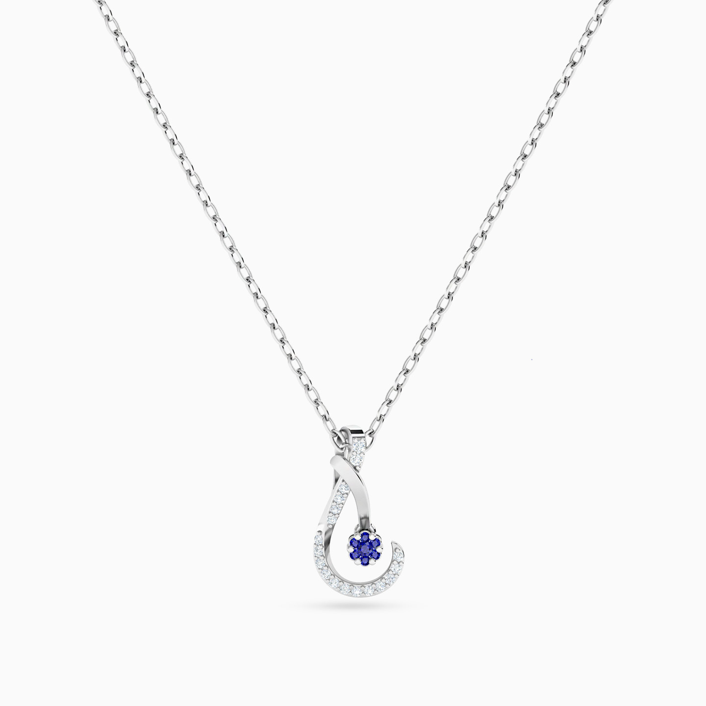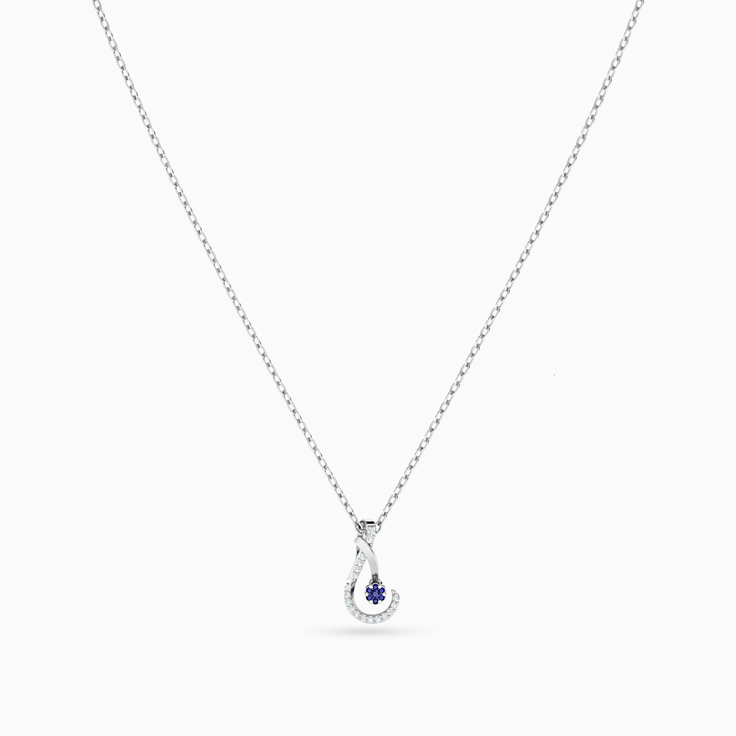 Like minimal jewelry that stands out? Then you will love this 18-karat white gold pendant necklace by L'azurde Diamonds! It features a dainty chain completed with an abstract-shaped pendant lined with sparkling 0.05-carat brilliant cut diamonds and completed with an eye-catching flower in the center made of meticulously arranged blue-colored round stones. Style it with a blue top or dress for a colorfully radiant look.