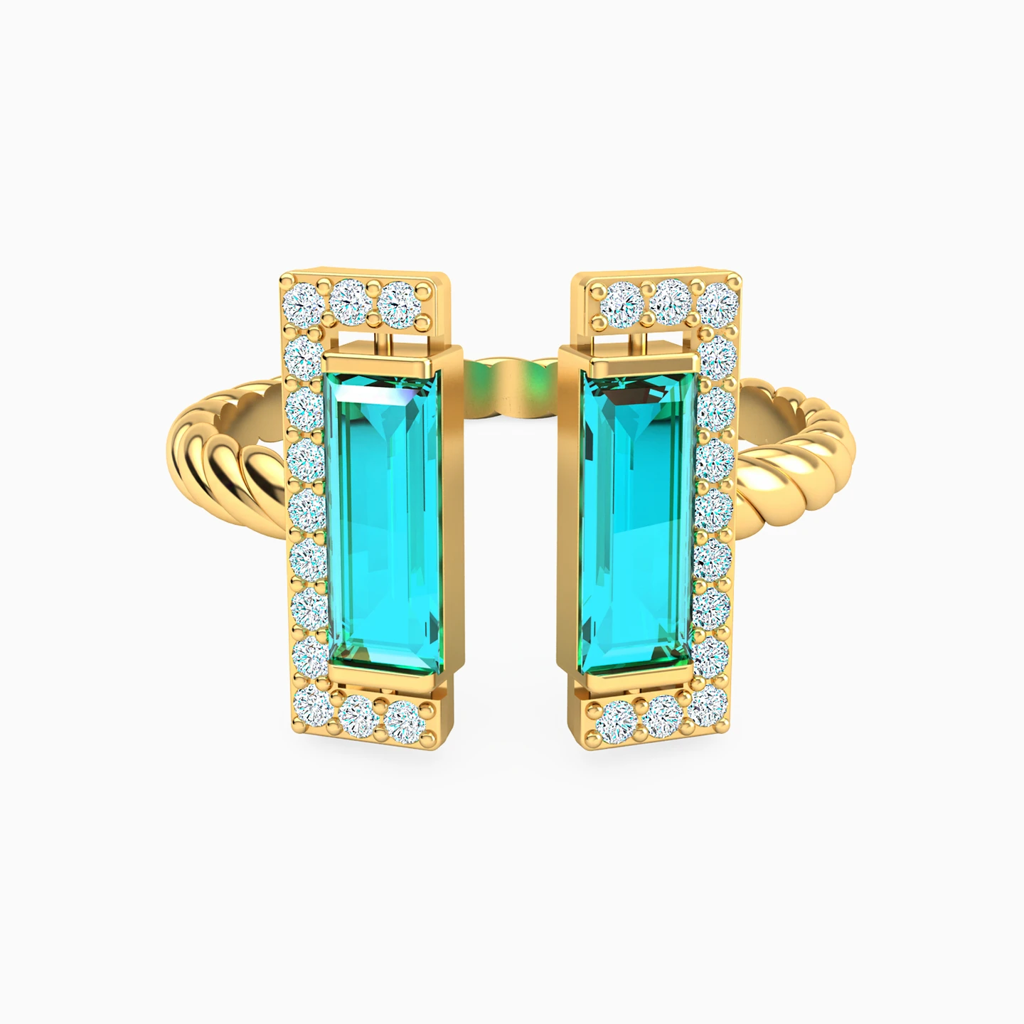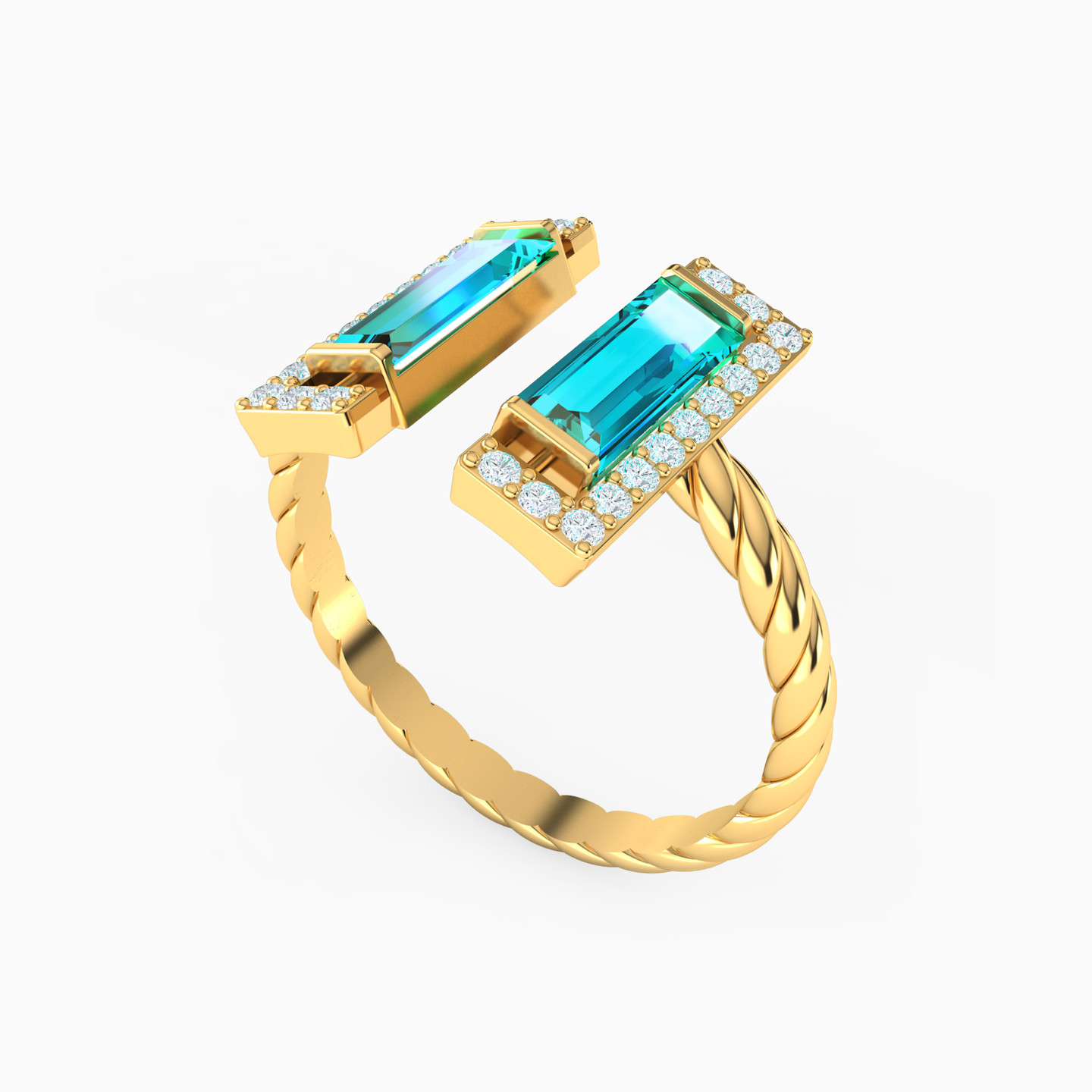 Baguette Colored Stones Two Headed Ring in 18K Gold