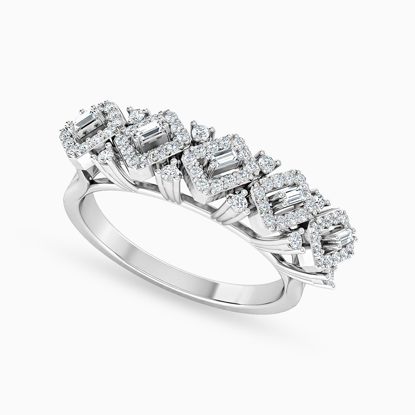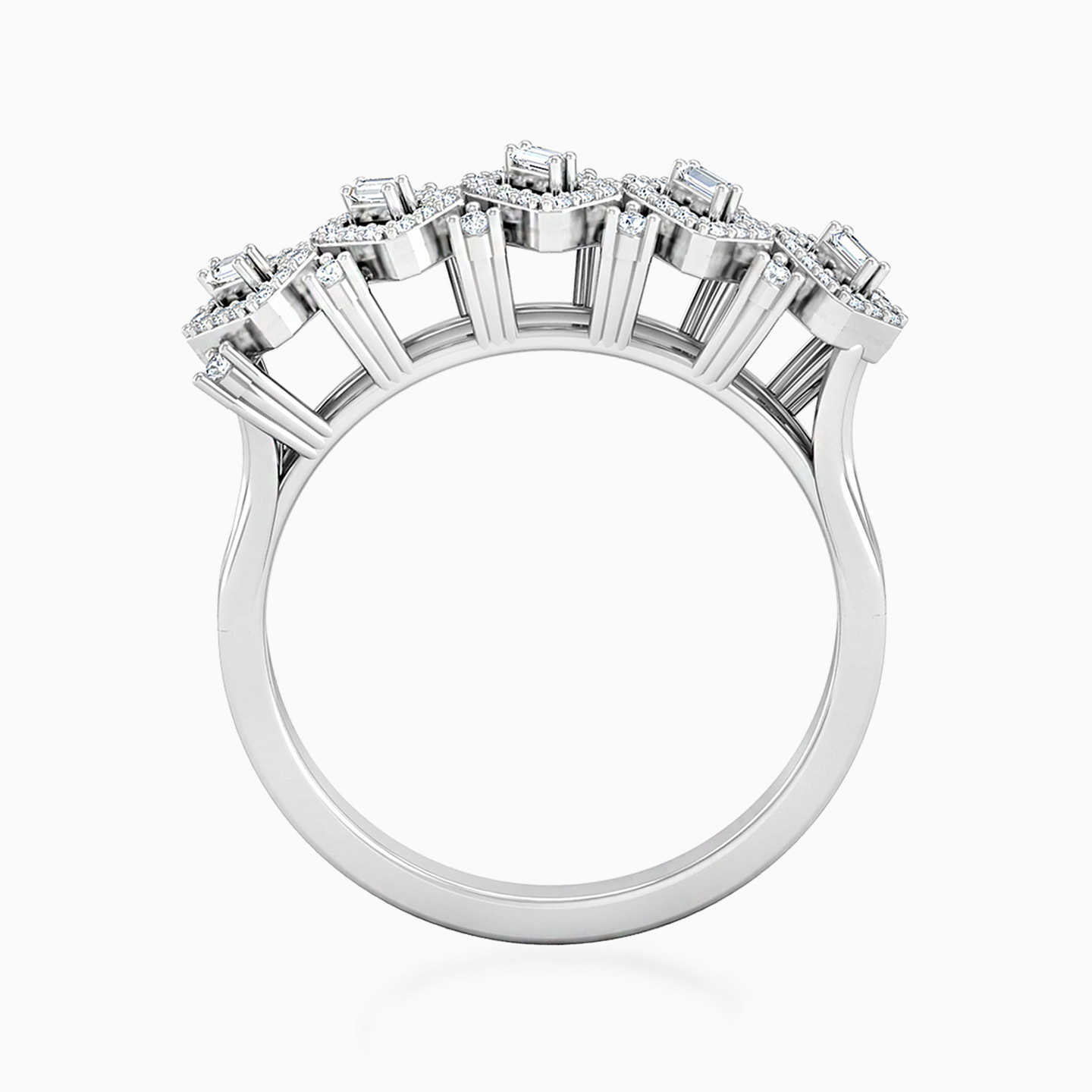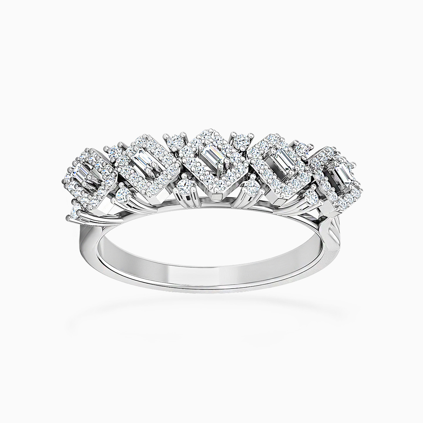 Introducing a stunning 18-karat white gold statement ring by L'azurde Diamonds to make you shine. Meticulously crafted rectangular frames are studded with sparkling brilliant-cut diamonds along an open frame design, radiating sparkle from every angle. This ring is a showstopper and is perfect for any occasion.