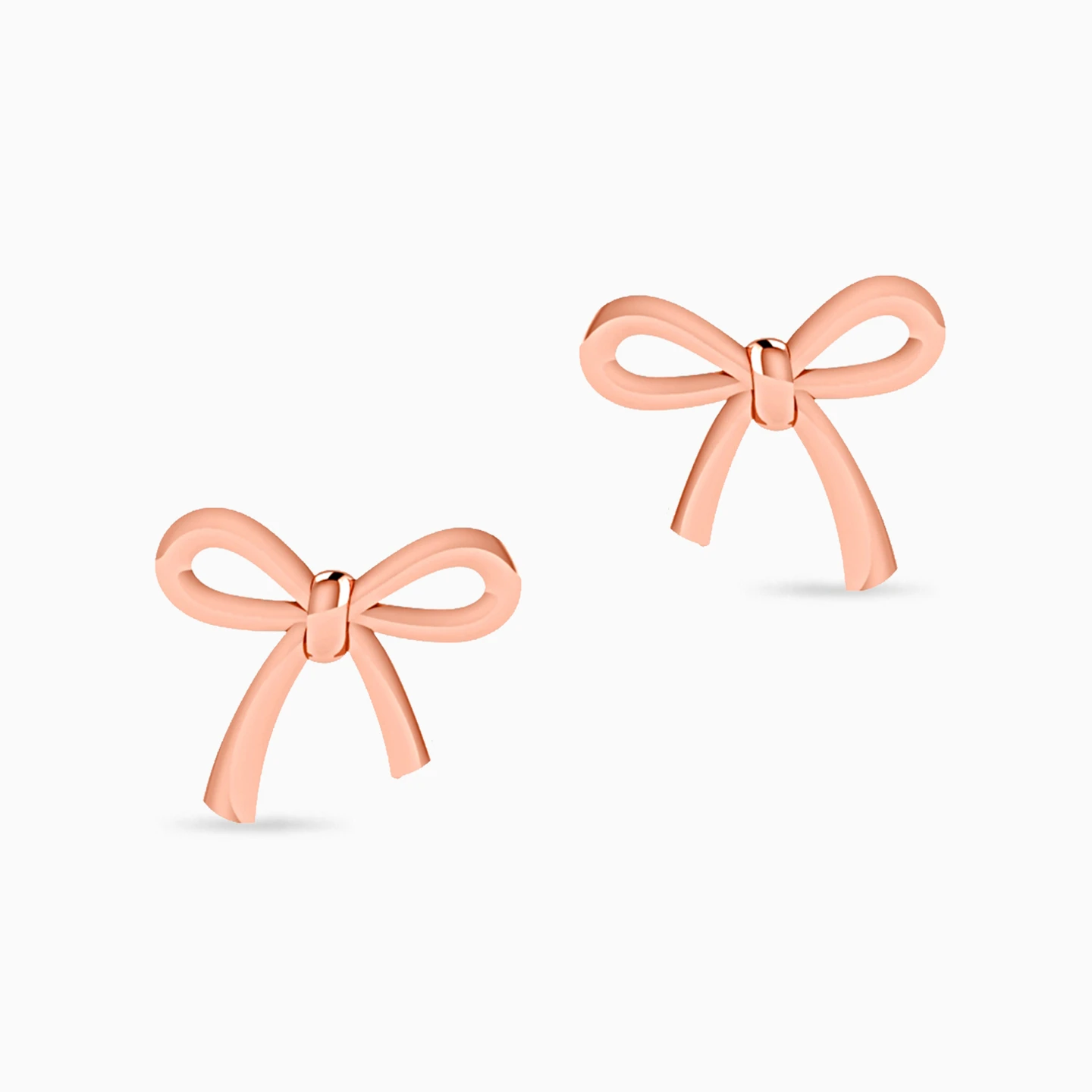 Add a bow to it! We love these petite bow shaped ear studs in rose gold for their simple design and top style. Finished with a push back post they make an easy accessory with everyday wear and suit all ages.