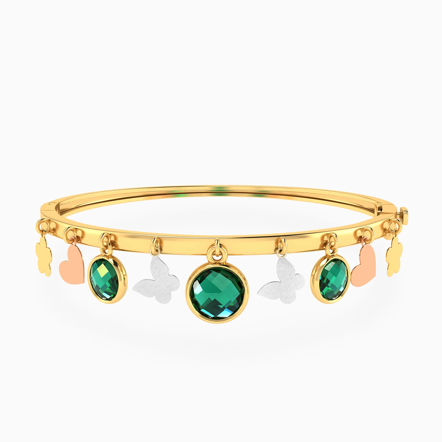 Butterflies Green Stone Bangle-Charm Bracelet In 18K Gold