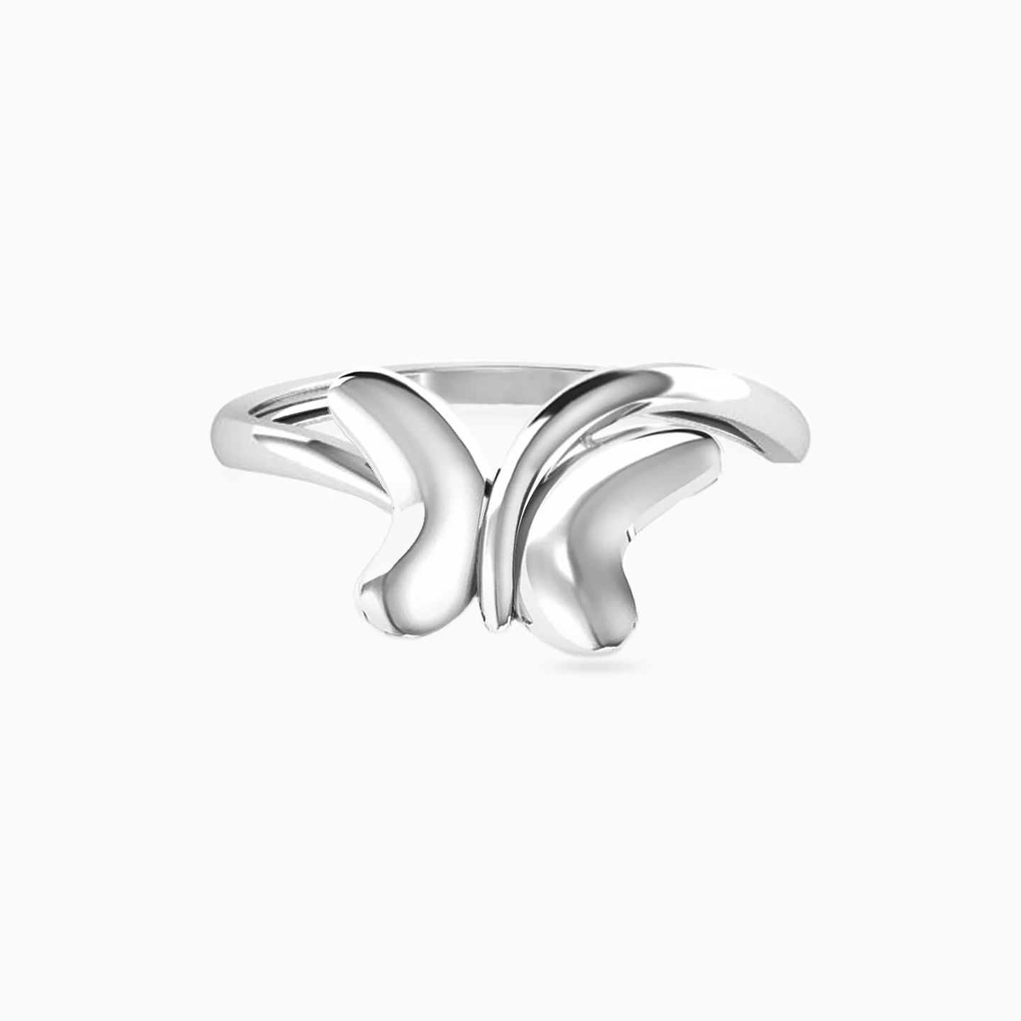 Channel your inner social butterfly with this ring from Miss L'. We love how the slim band curves into a solid butterfly motif to the center. Cast in 18-karat white gold, this piece will look as lovely on its own as it will with a butterfly accented bracelet from our collection.
