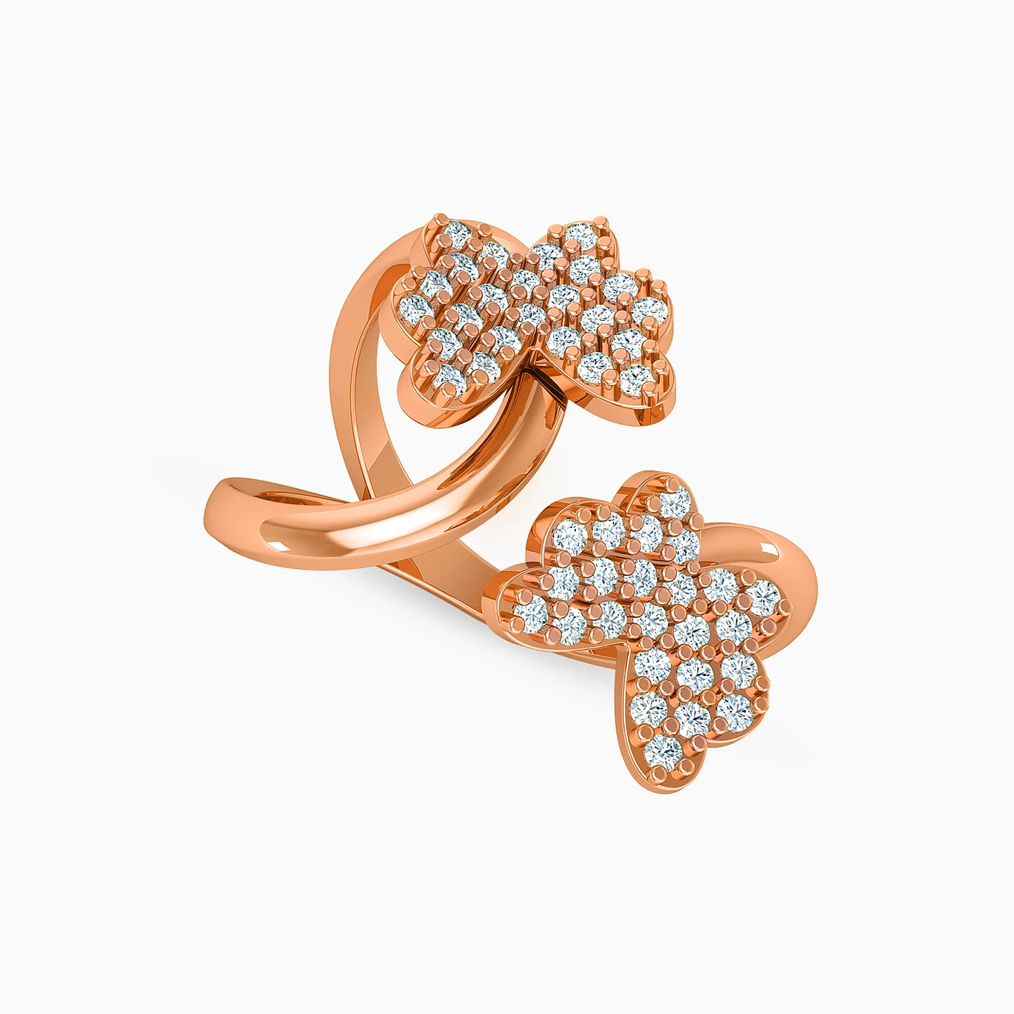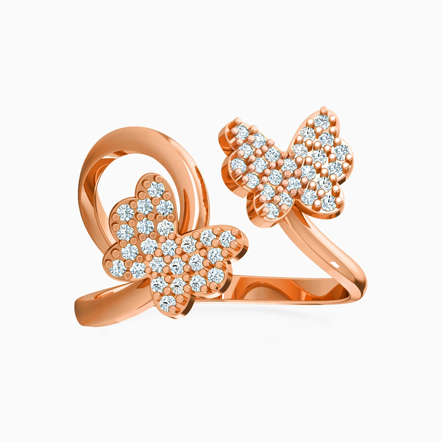 We call this the elegant trio. The combination of butterfly motifs, clear stones and 18-karat rose gold casing in this ring from L’azurde Instyle give it a premium appeal and make it a beautiful addition to your everyday wear. The curved lines of the band add a feminine flow to this piece. Wear yours solo or paired with a matching wrist watch.