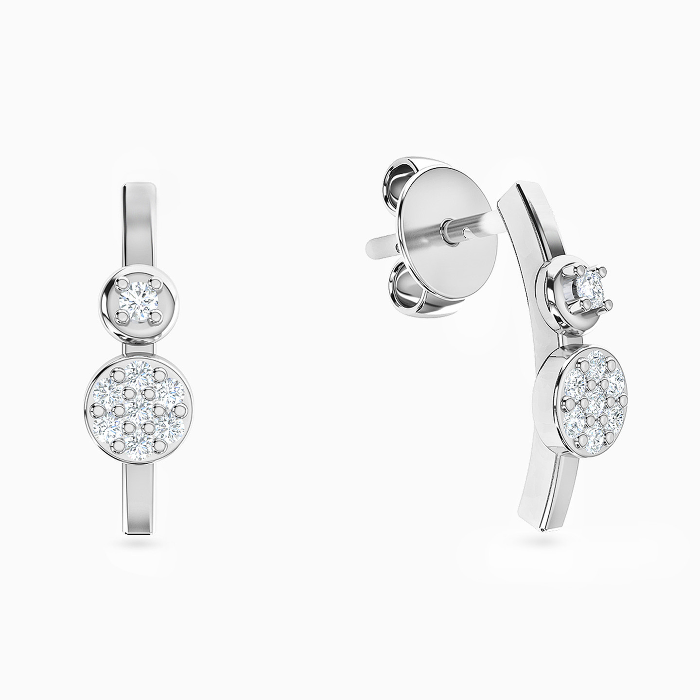 A modern pair of studs from L’azurde Diamonds. These earrings feature a sleek and curved arc with two circle motifs sparkling with stones and all of this comes in 18-karat white gold. Wear these pair of studs with a crisp white shirt and blue denim.