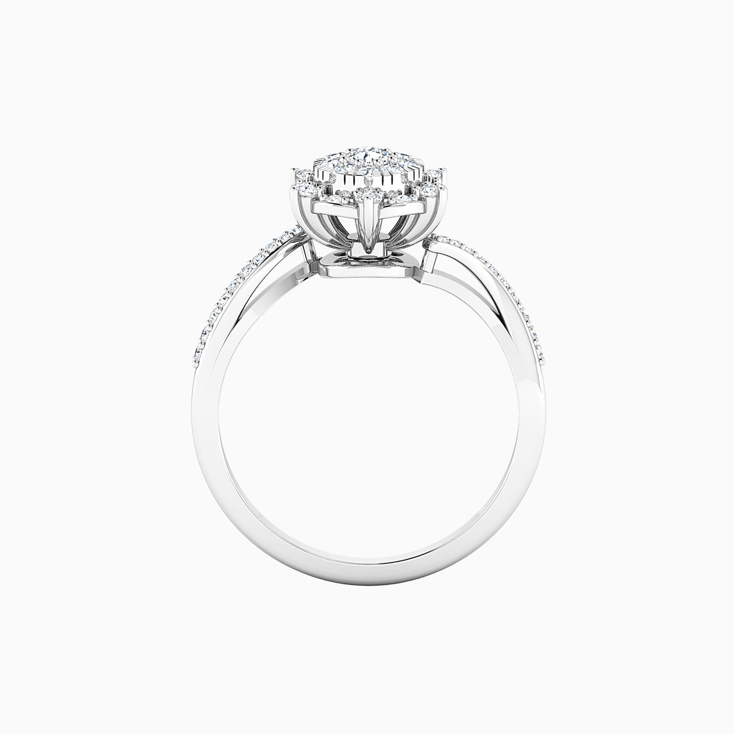 A swirling band of diamonds wraps around the finger with the most mesmerizing centerpiece. This statement ring by L'azurde Diamonds features an exceptionally detailed and exquisitely crafted centerpiece made of artfully arranged 0.35-carat brilliant cut diamonds, marquise-shaped motifs and a textured halo. Crafted from 18-karat white gold, this stunning ring is all you need to instantly brighten up your everyday outfit.