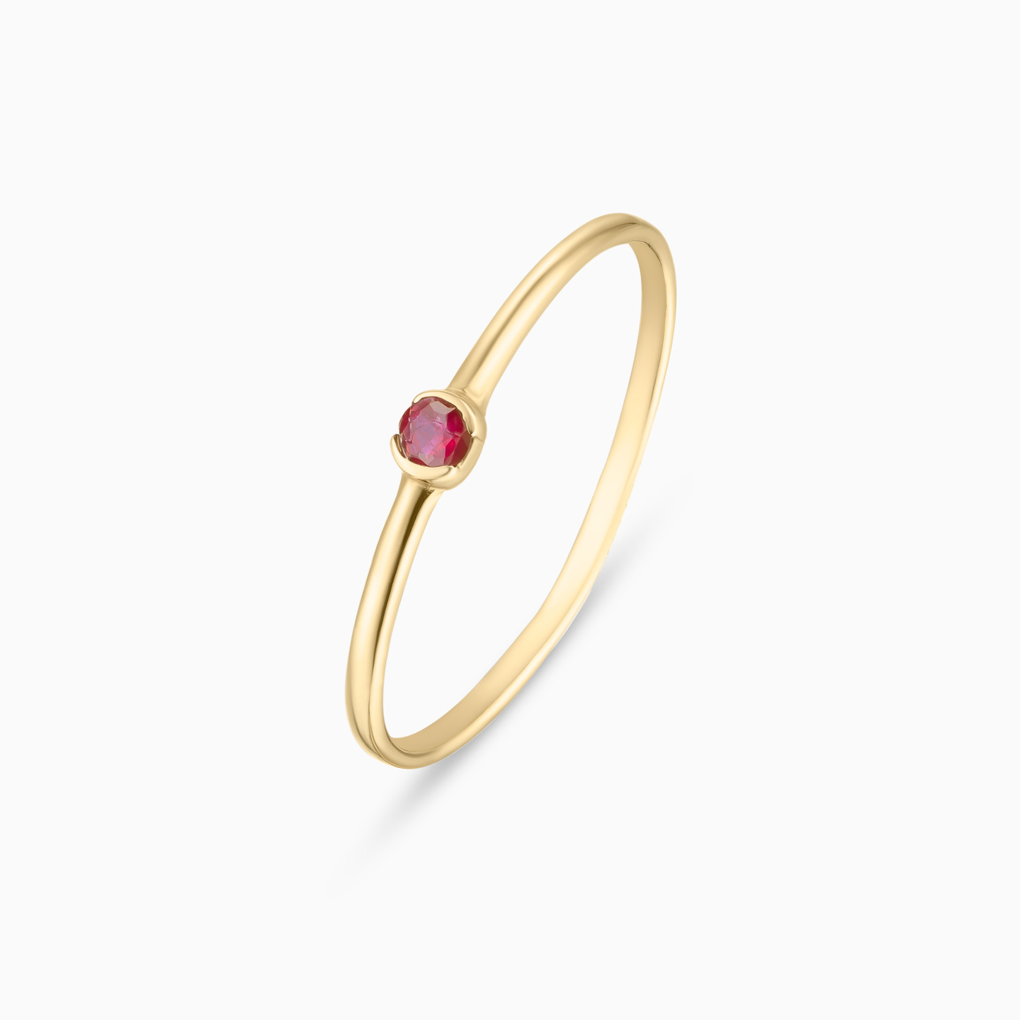 Make a statement. This stackable Ring from Miss L' adds a dainty and feminine touch to any outfit. Crafted in 18-karat yellow gold, this sweet ring has a single colored stone at the center that lends eye-catching sparkle to your looks. Perfect on its own or stacked with other favorites, this ring is an everyday essential.