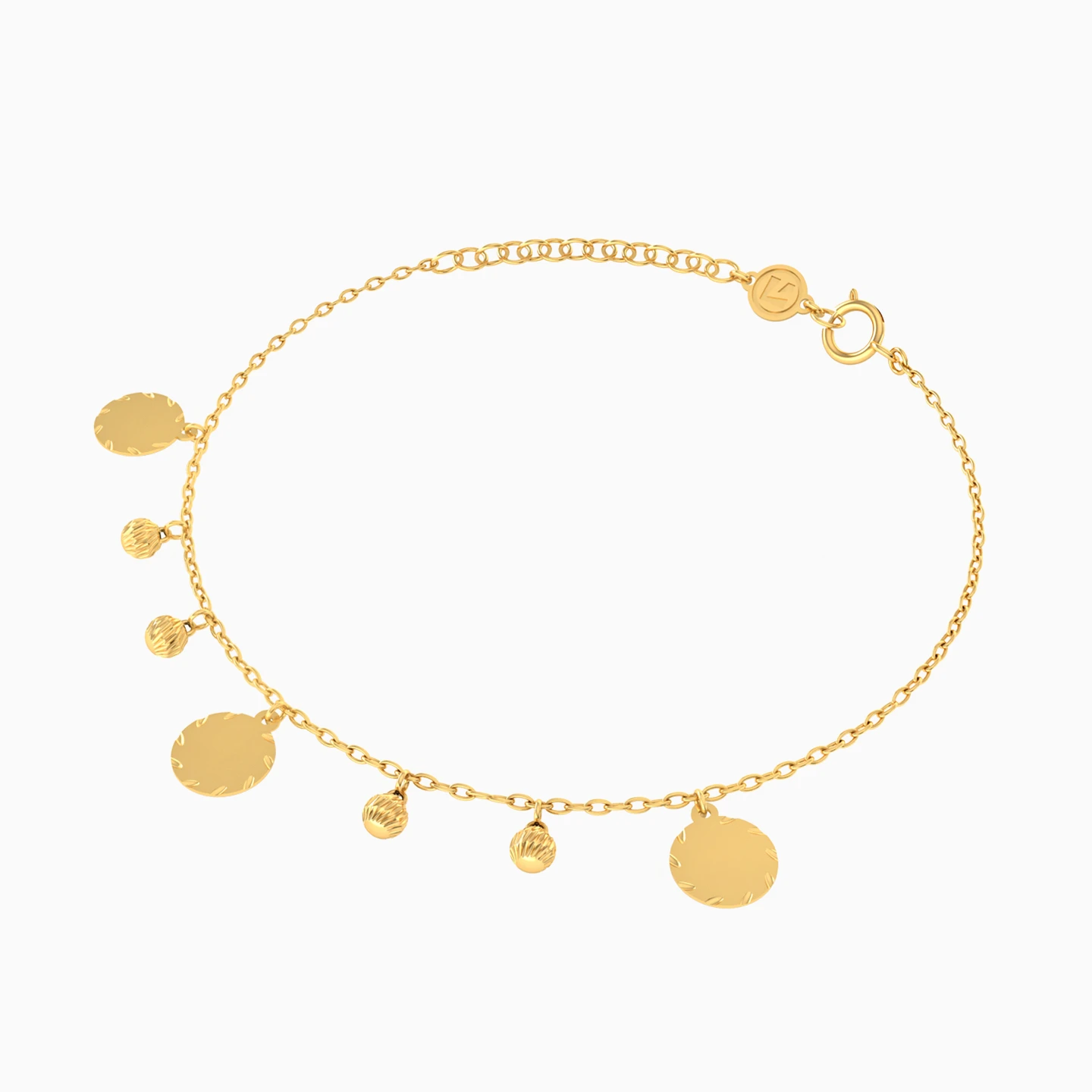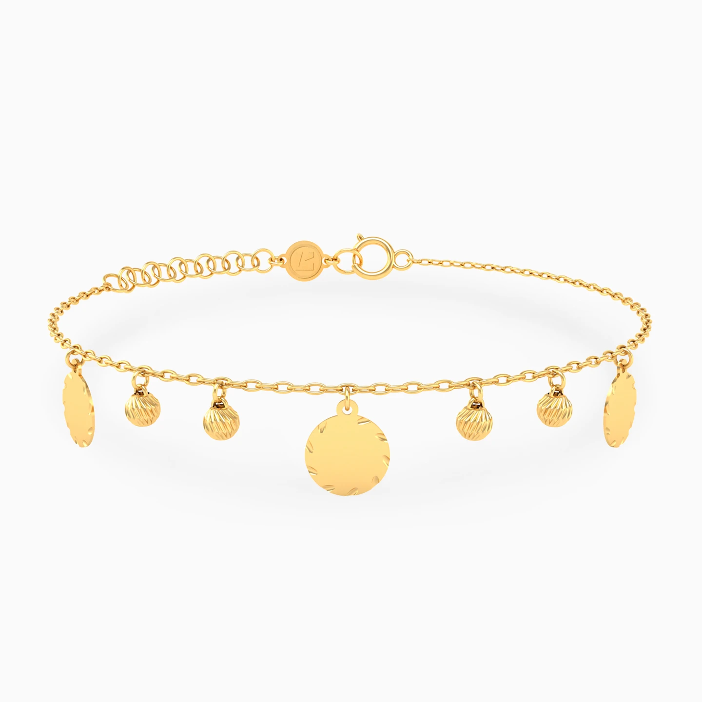 Add a touch of gold glamour to your wardrobe by making this stunning chain bracelet from Miss L' an everyday jewelry piece. Sleek golden discs and dainty beads adorn this elegant chain bracelet crafted in 18-karat yellow gold. We love how sophisticated this bracelet is and how beautifully it complements your casual and dressy looks.