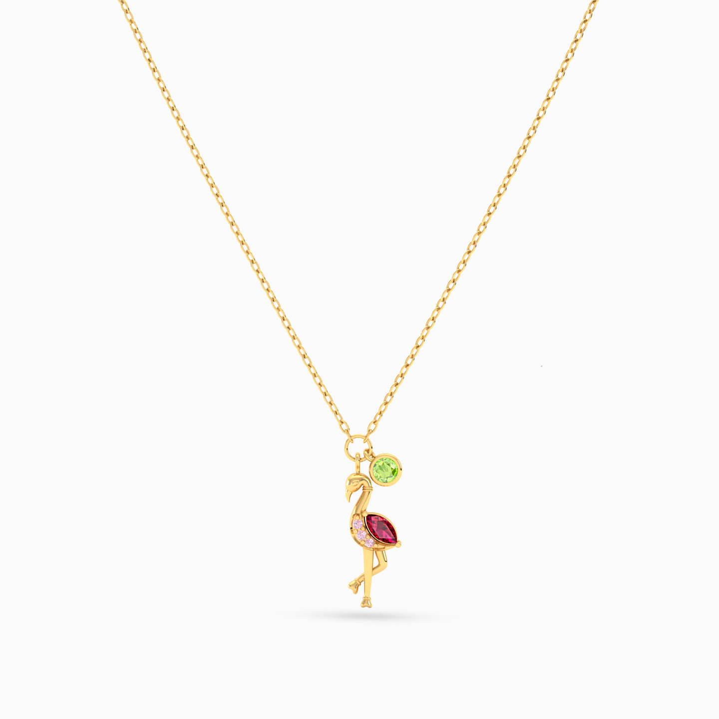 Pep up your look with this whimsical piece from L’azurde Instyle. Featuring a stone studded flamingo pendant suspended from an 18-karat yellow gold chain, this necklace will give you a distinct look and work wonderfully with poolside outfits and summer dresses.