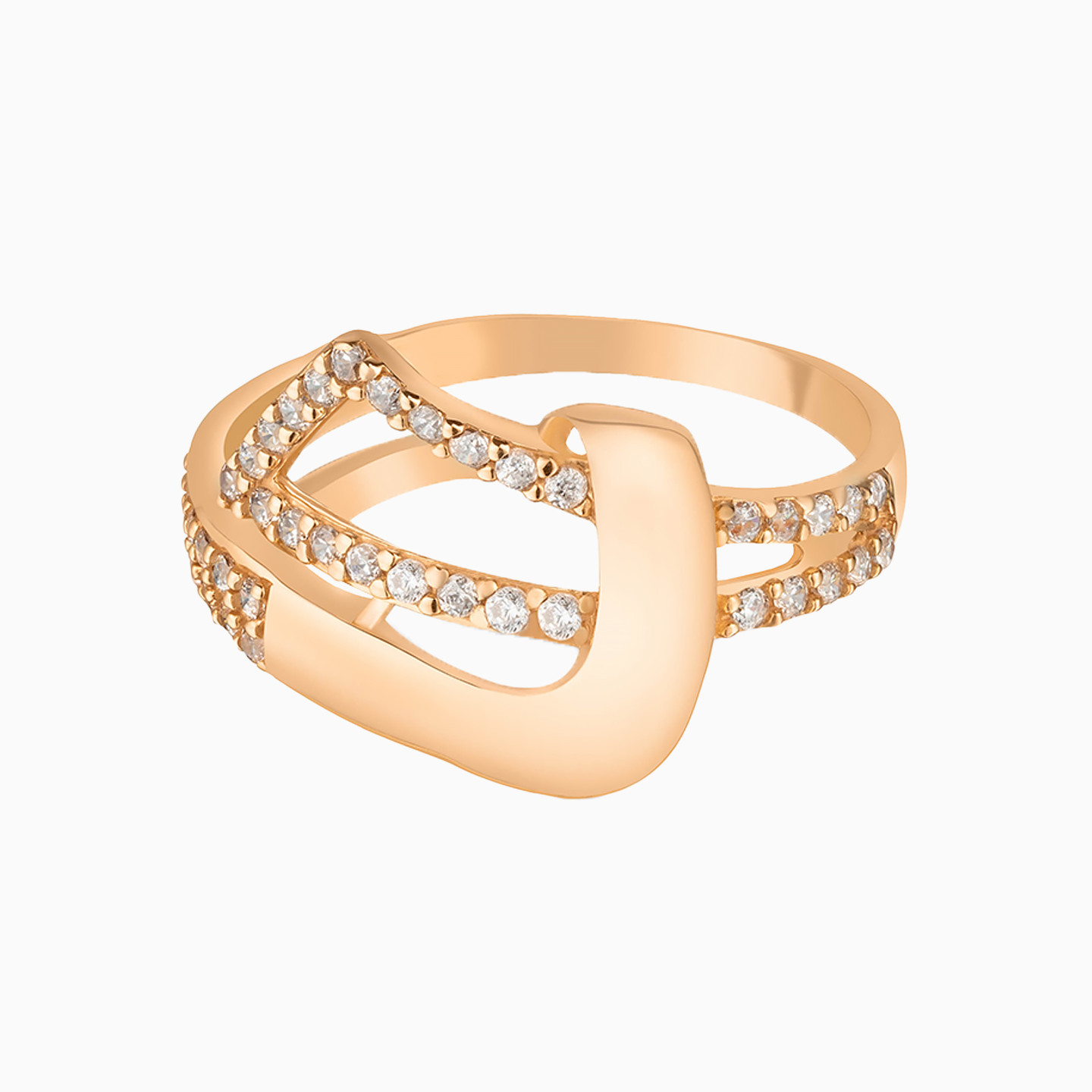 Elevate your style with this 21-karat yellow gold statement ring from L'azurde Gold, a fusion of edgy design and sparkling sophistication. Swirling bands with sharp edges create a captivating dance as they cross over each other, leading to a stunning split-style design at the center that is studded with sparkling round-shaped cubic zirconia. This ring is a bold and brilliant accessory that you need in your jewelry collection.
